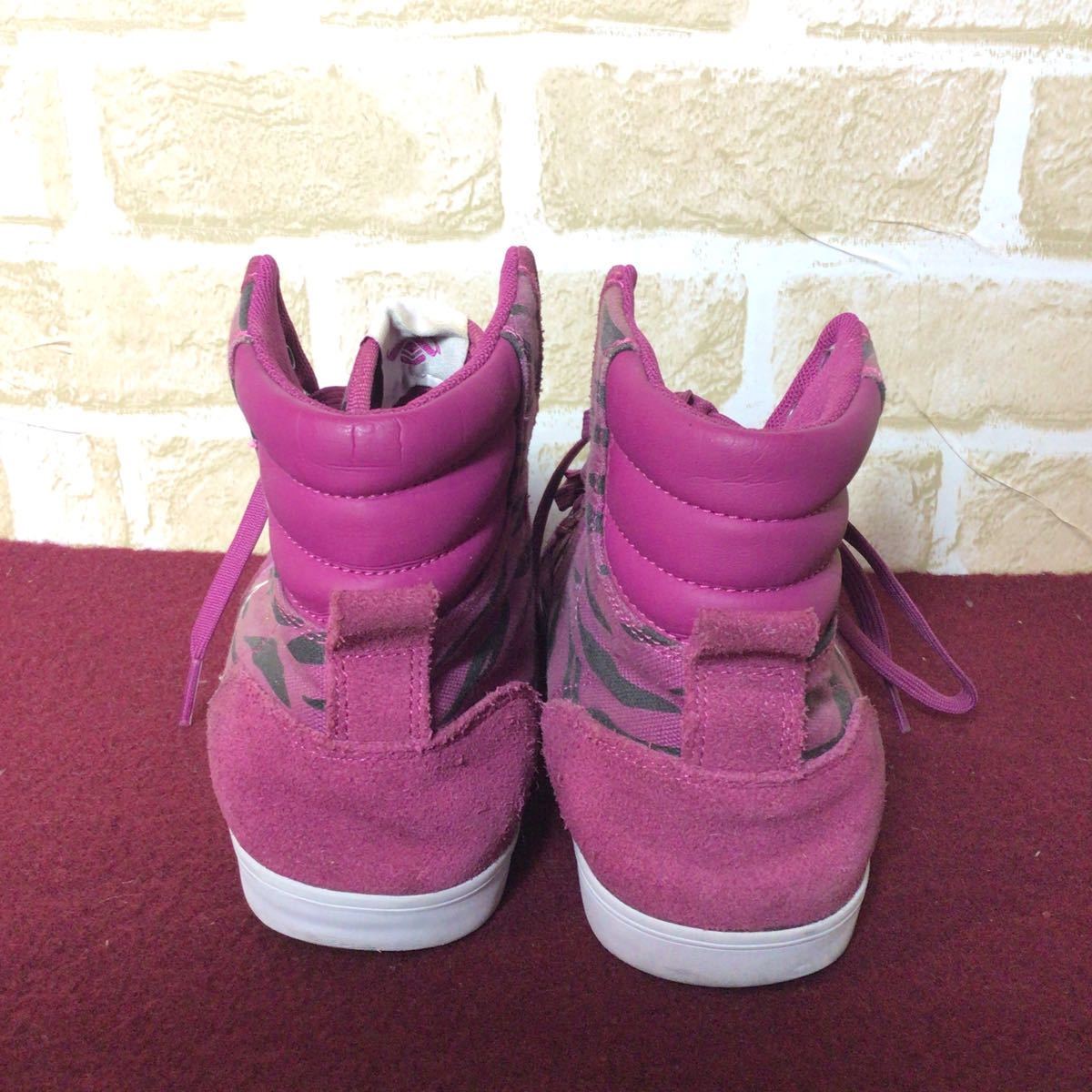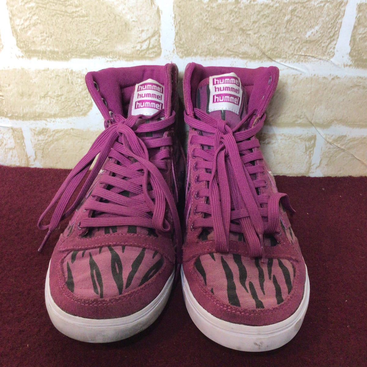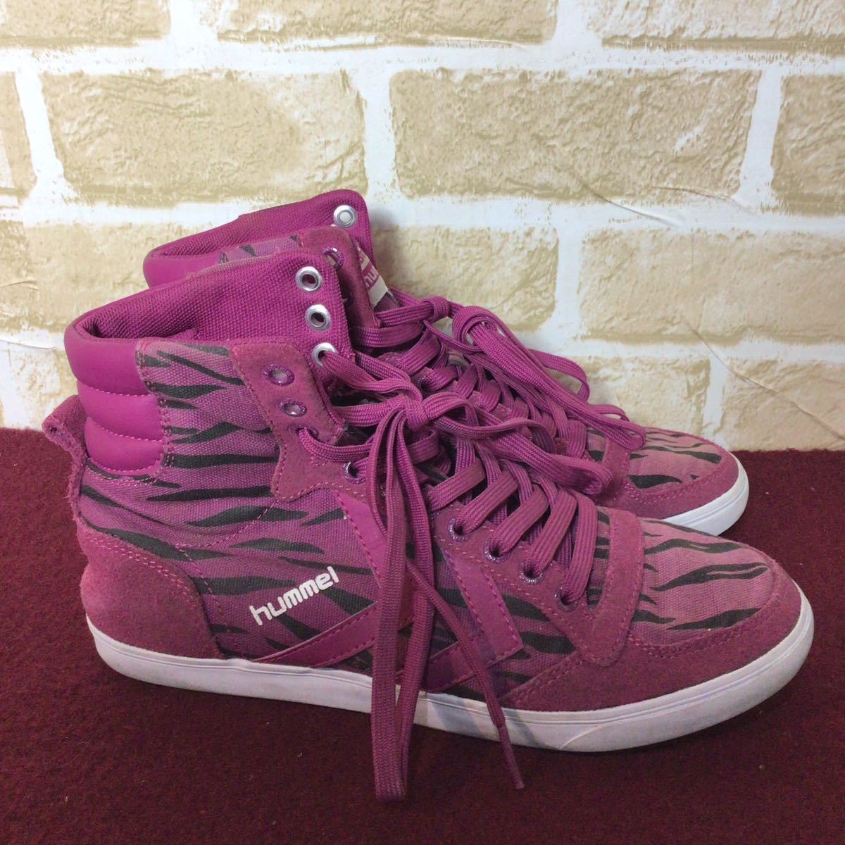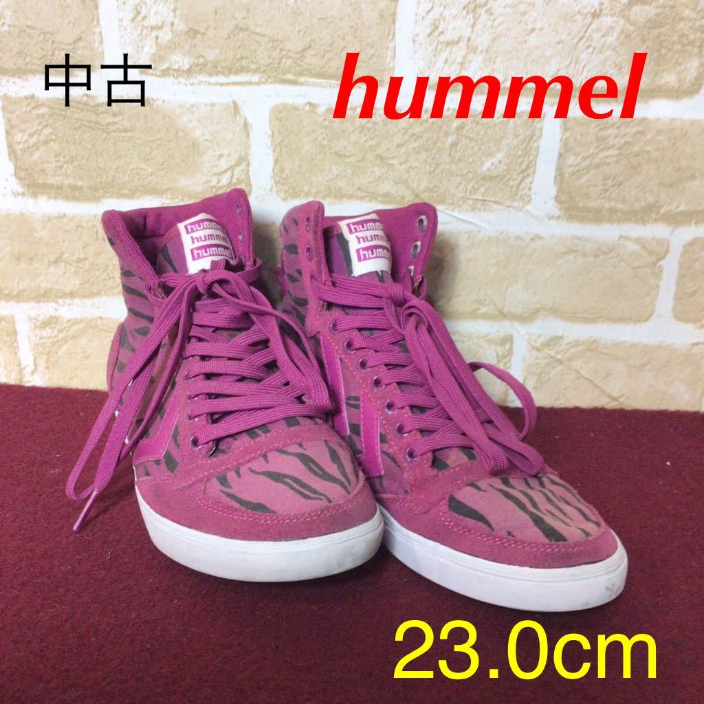 【売り切り!送料無料!】A-24 hummel!スニーカー!23!むらさき!パープル!ハイカット!ゼブラ柄!アニマル柄!かわいい!おしゃれ!中古