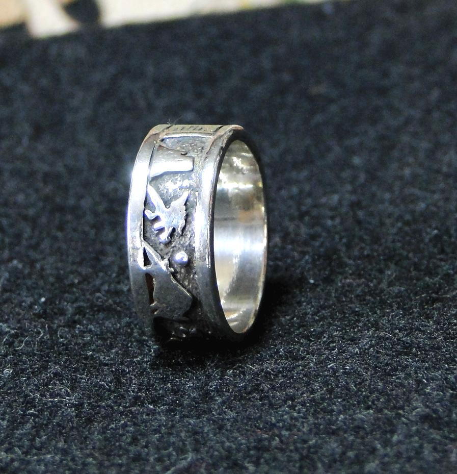 80年代の ホピ族 ビンテージリング ストーリテーラー、、、 ネイティブの生活 モチーフ カチナ(精霊) バッファロー&マウンテン ステアリングシルバー 素朴な味わいの ビンテージリング、、、 ■商品仕様 ホピ族 SHUBE'S MFG. INC、 (刻印) (アルバカーキー) ステアリングシルバー サイズ11号 幅8.2mm 厚1.7mm 重量6.2g Made in U.S.A /新品・送料込 VINTAGE ビンテージリング、、、 ハンドメイドシルバー 特有のスレ 燻しがござい 十分にご検討の上、 決断をお願い致します。 | ||||
