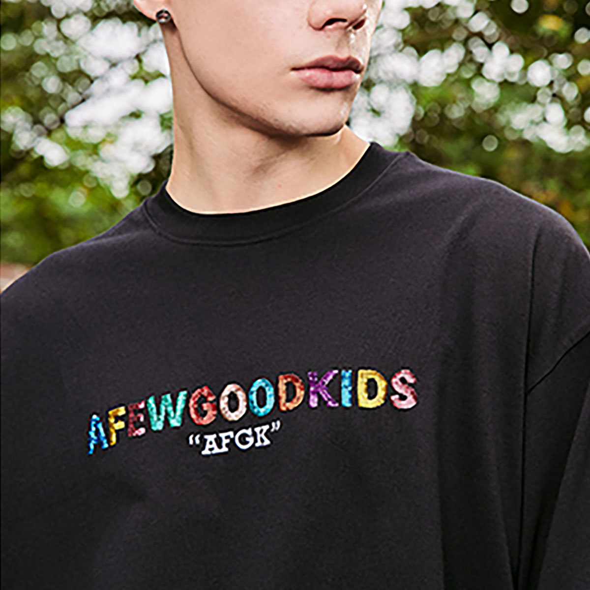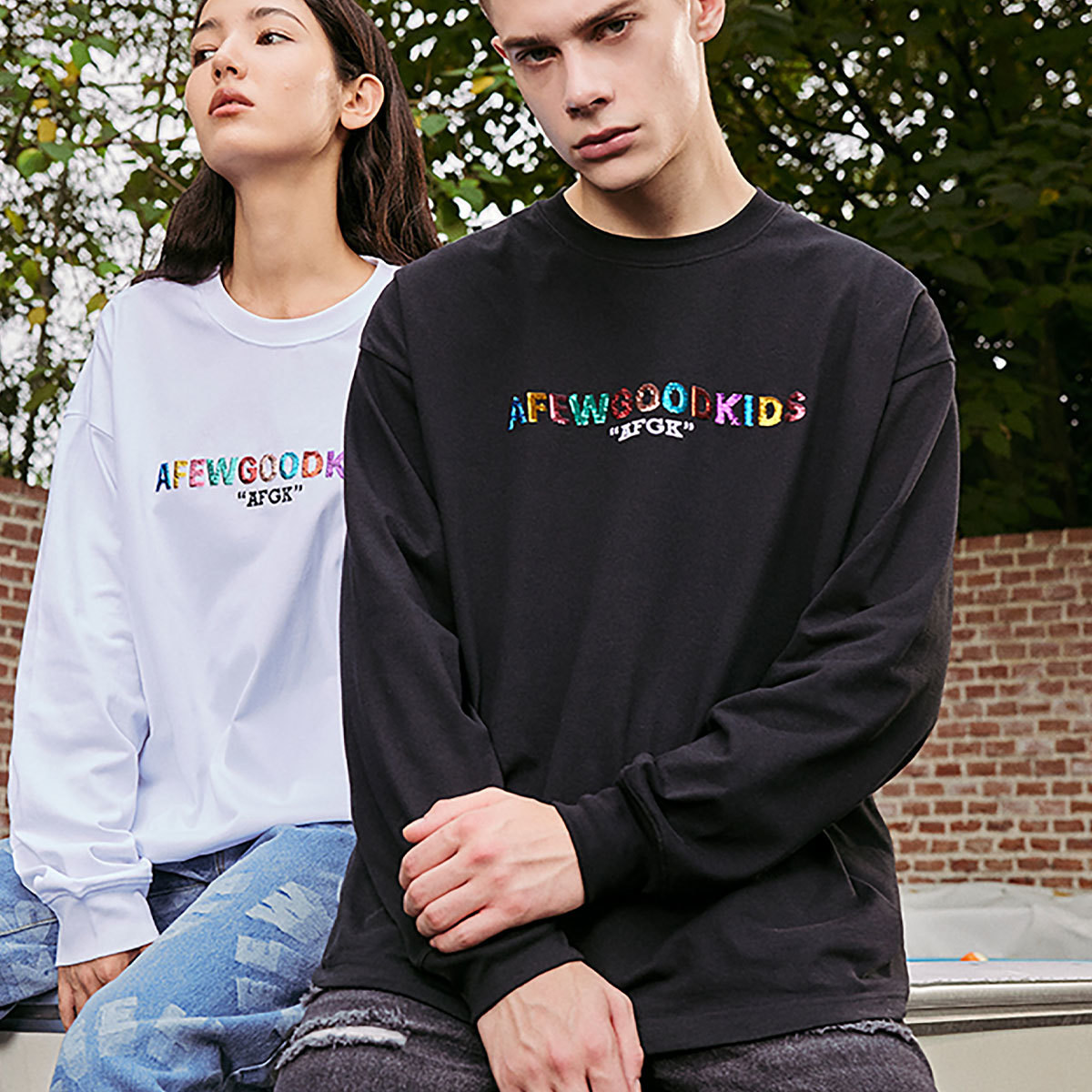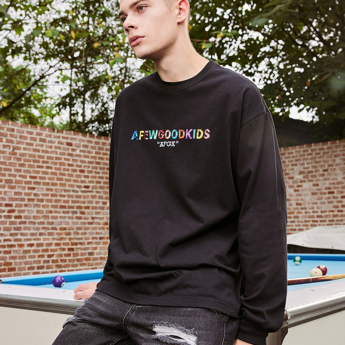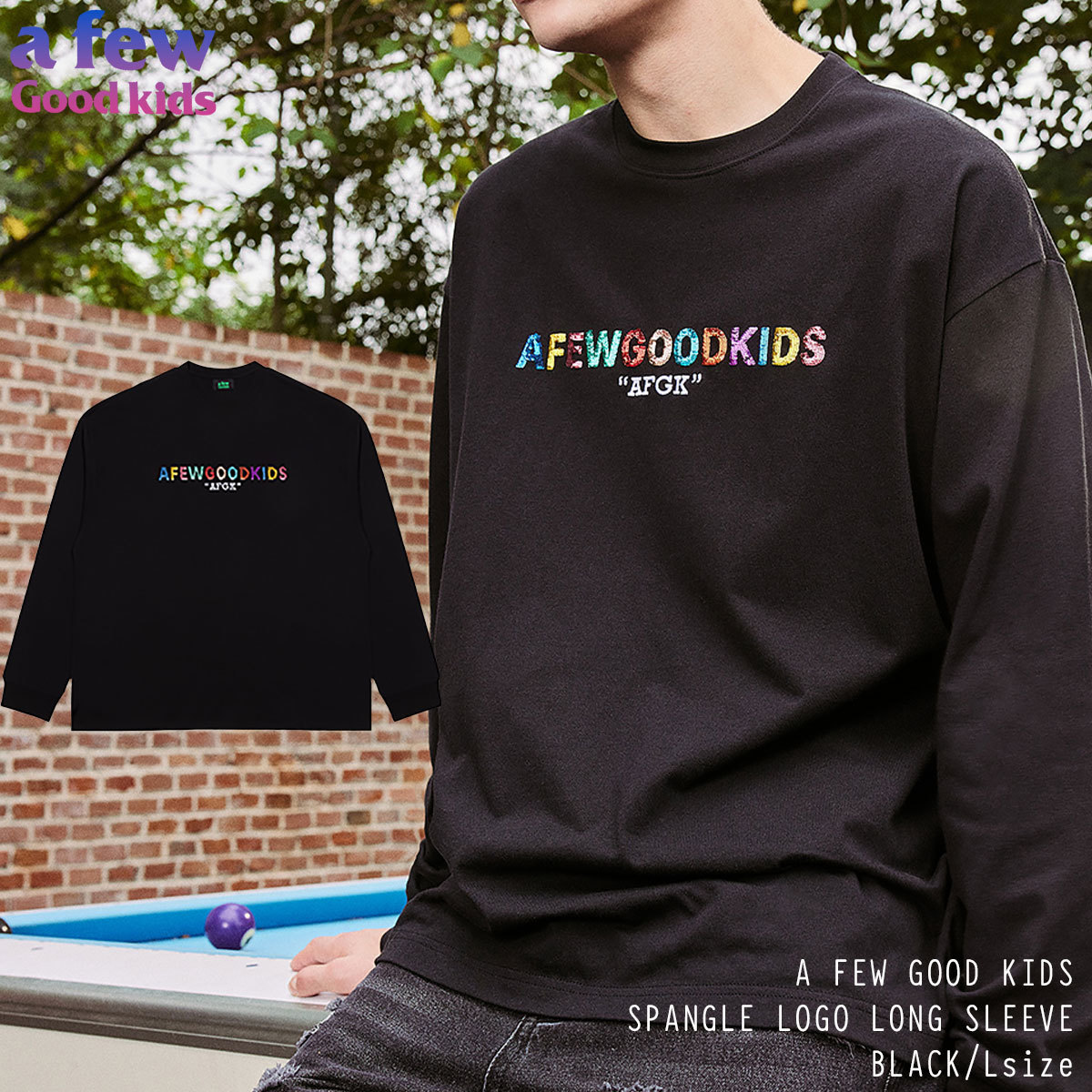 A FEW GOOD KIDS AFGK 正規品 男女兼用 ユニセックス ビッグサイズ ストリート系 スパンコール ロゴ 長袖Tシャツ SPANGLE LOGO LONG SLEEVE
