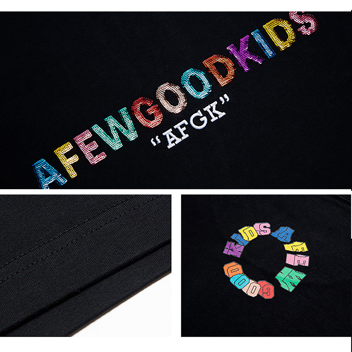 A FEW GOOD KIDS:スパンコール,“AFGK”:刺繍