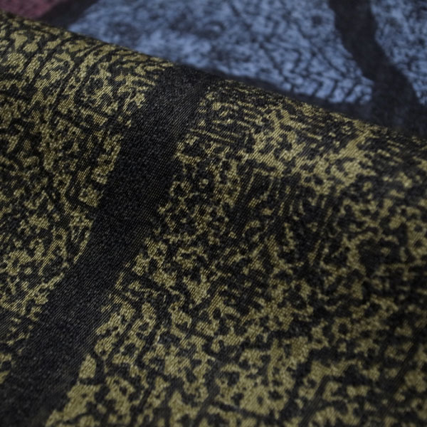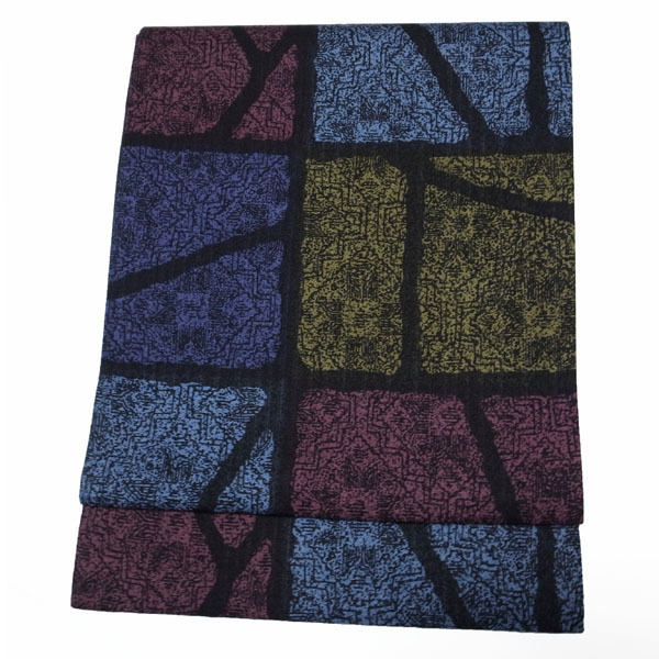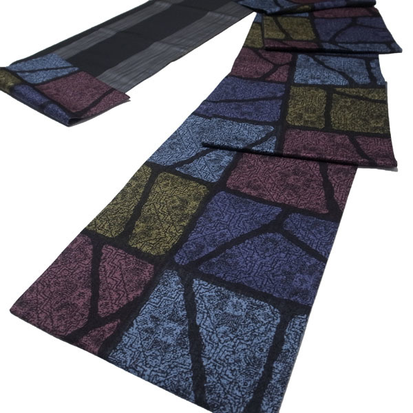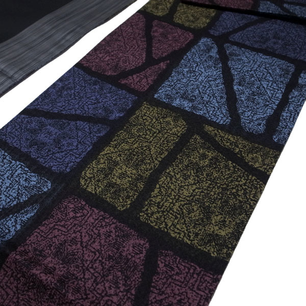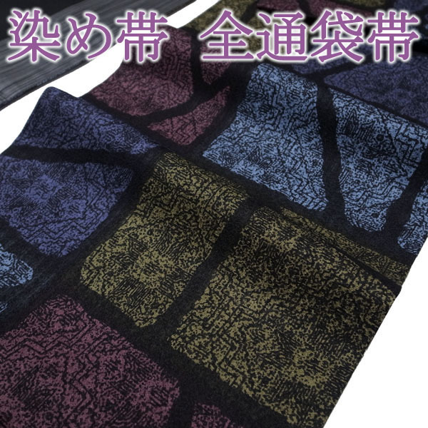 袋帯 染め帯 作家物のようなデザイン 黒地 全通 モダン柄 おしゃれなデザイン カジュアル 普段着 小紋 紬 などに 上質 春 秋 冬 おしゃれ オシャレ お洒落 美品 未使用品 未使用 きれい キレイ 綺麗 新古品 仕立て上がり品 kp629