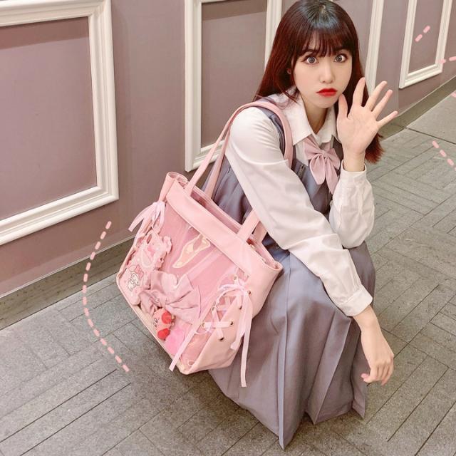 短い文章: 透明カバーに好きなアイテムをディスプレイ。自分だけのスタイルを創り上げ、個性を表現する痛バッグをお楽しみください。