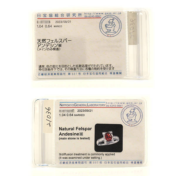 ソーティング記載 | 天然フェルスパー アンデシン※ (メインのみ検査) 通常、色の変化を目的とした拡散処理が行われています。 |