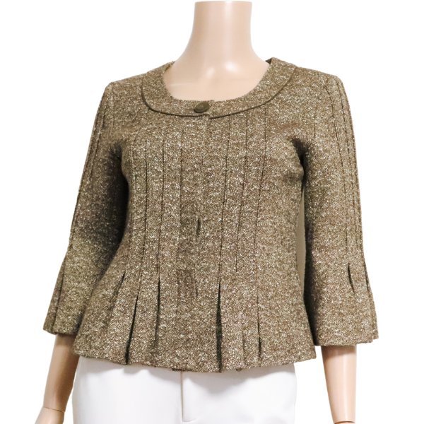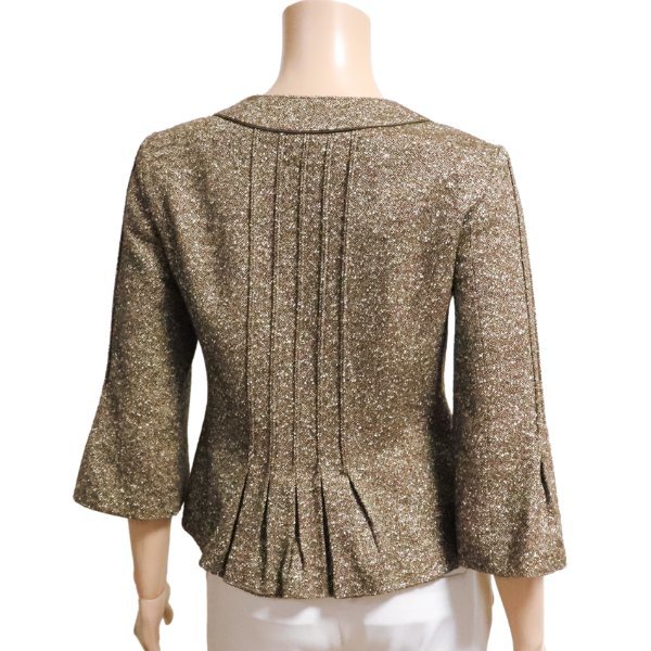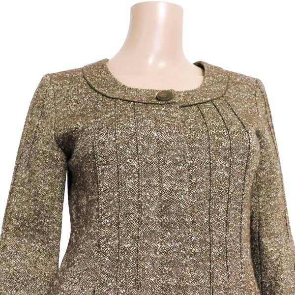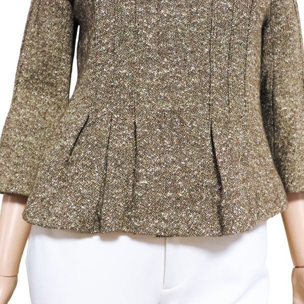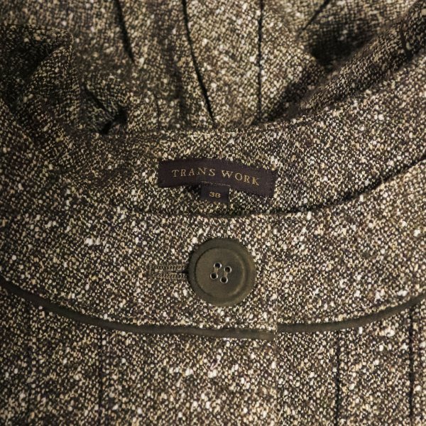 | 商品詳細 | NO-A5096 ★【ブランド】 *TRANS WORK 株式会社 三陽商会 日本製 ★【特徴】 *暖かみのあるシックなブラウン系カラーのお洒落ノーカラージャケットです。 しっとりと暖かく、軽やかな着心地の上質ウールのツイード素材。 襟元のバイピング部分には人工皮革を施しています。 フロント部分はスッキリとした比翼仕立て、ボタン4つ留め仕様。 フロントや両袖に施されたパネルデザインが素敵なノーカラージャケット、是非いかがでしょうか♪ ・肩パット× ・裏地○ ・伸縮性○ ・ポケット× ・季節性 春秋向け ※状態につきましては当社基準のランク表も合わせてご参考下さい。 | ||||||||||