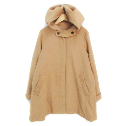 アーバンリサーチ lite コート フード付き ミドル丈 スタンドカラー ウール シングルボタン ロールアップ F ベージュ /FF3 ■MO レディース