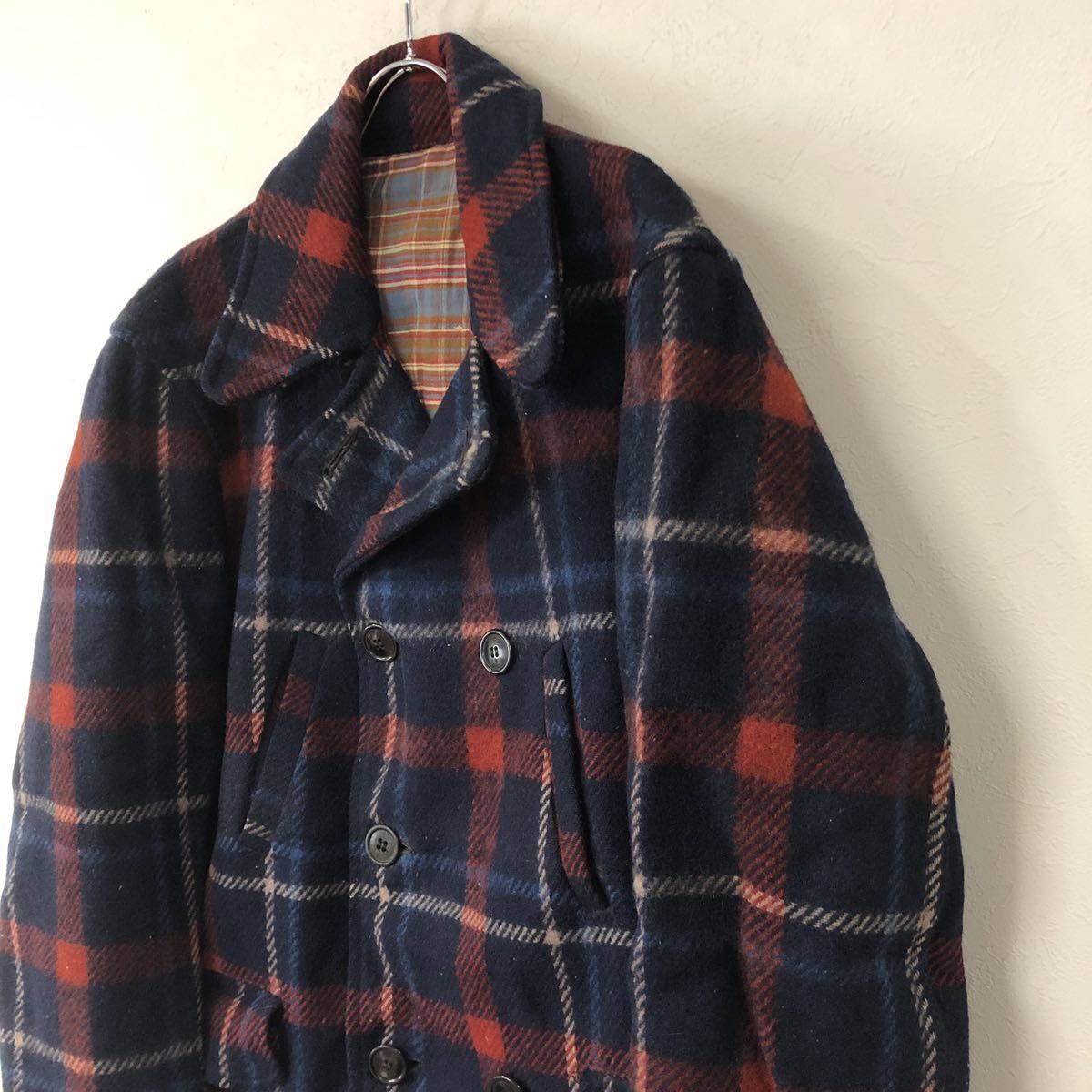 ビンテージ 40s NORTH COUNTRY ウール チェック ジャケット ダブル Pコート 230908