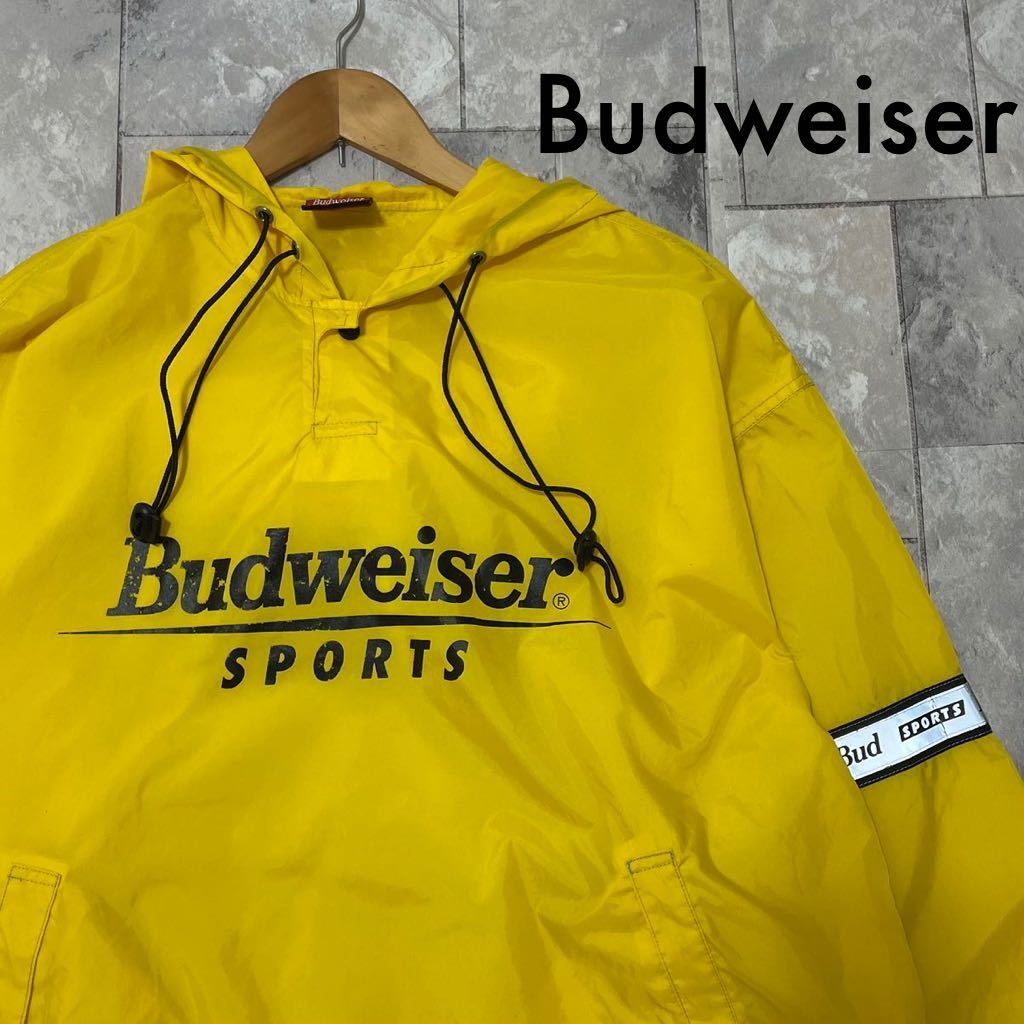 Budweiser バドワイザー ナイロンジャケット プルオーバー フード 企業ロゴ ビッグロゴ ハーフボタン 玉SS1110