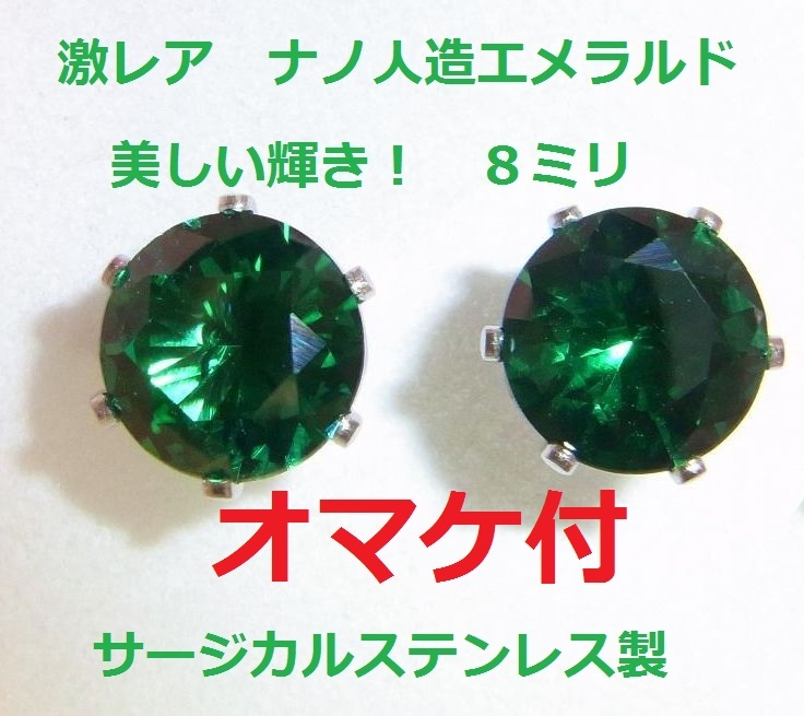 4.8ct 大粒8ミリ 高品質 新型 模造エメラルド ピアス 316ステンレス製 | |||