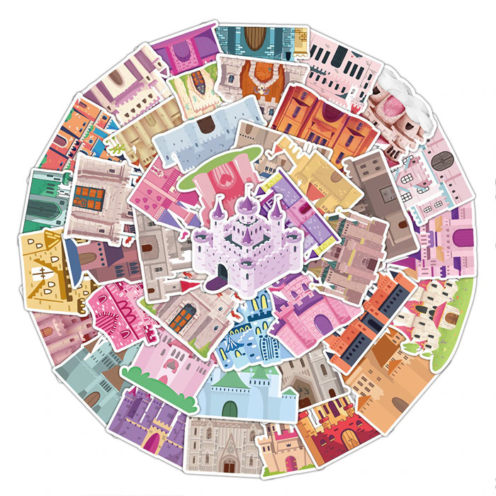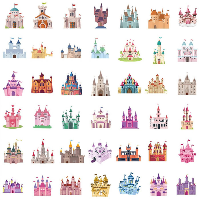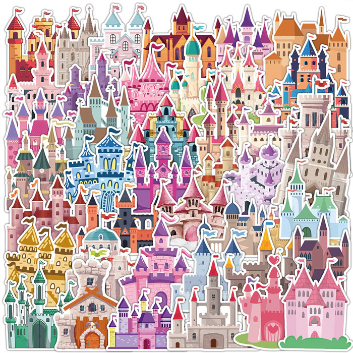 40枚 ステッカー かわいい プリンセス 城 防水 耐水 シール 詰め合わせ 1284