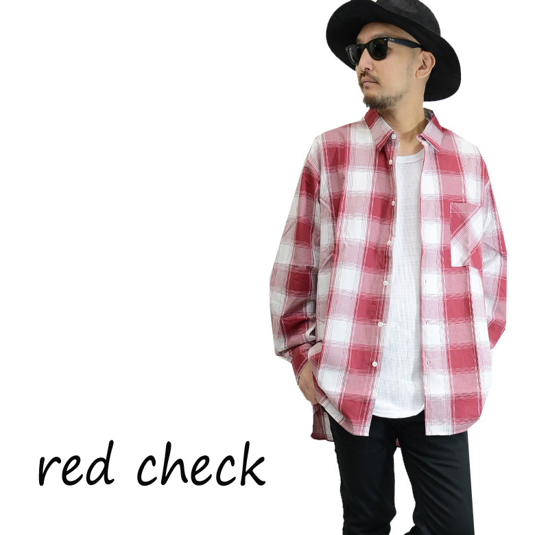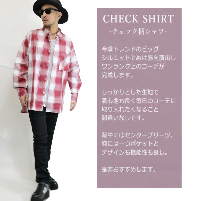 長袖シャツ/ロングシャツ/チェック柄/ビッグサイズ/オーバーサイズ/