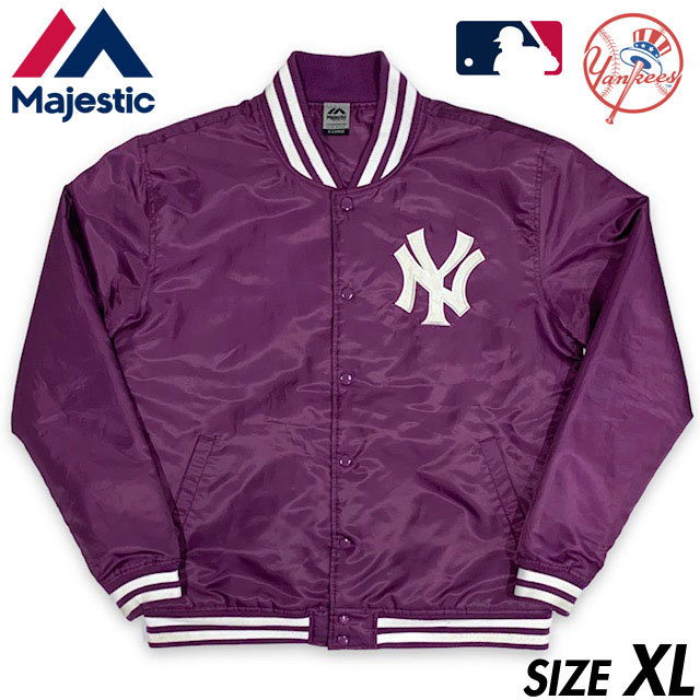希少■ Majestic (マジェスティック) MLB NEW YORK YANKEES (ニューヨーク ヤンキース) サテン スタジャン 紫白 (パープル/ホワイト) XL