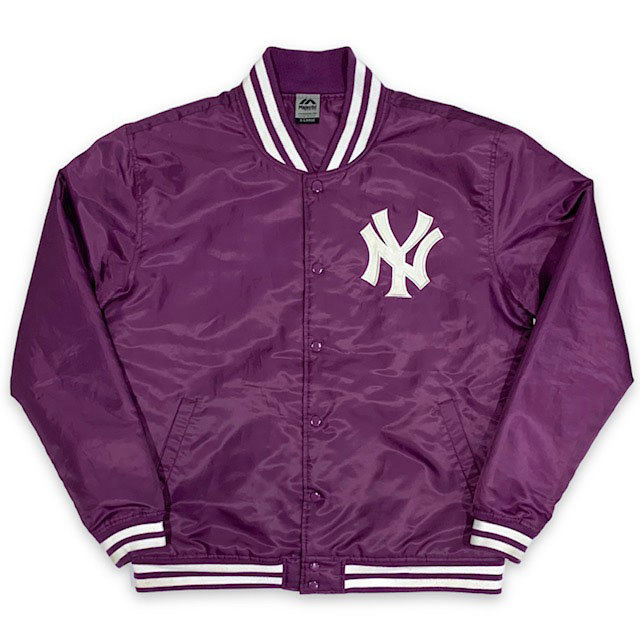 Majestic (マジェスティック) MLB NEW YORK YANKEES (ニューヨーク ヤンキース) サテン スタジャン 紫白 (パープル/ホワイト)  XL