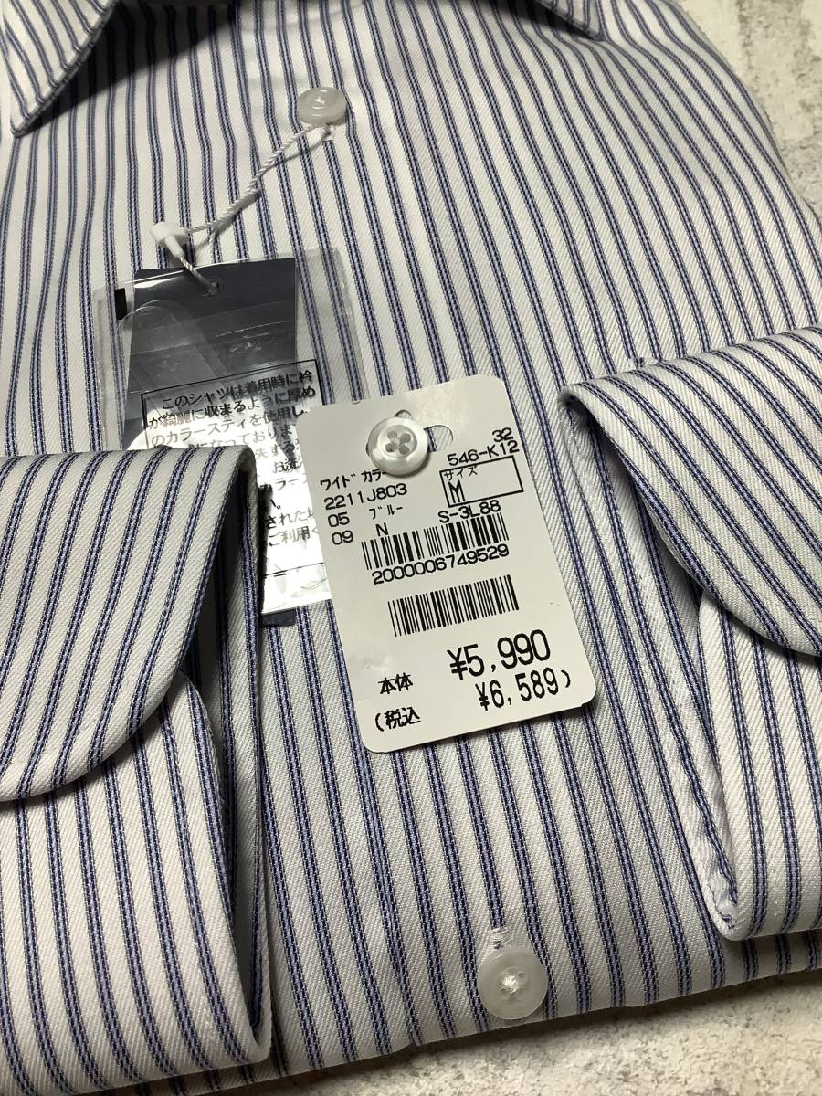 新品未使用 39-86 長袖Mサイズ ノンアイロンコットン★ドレスシャツ 綿100%☆サックスブルーストライプ ワイドカラー
