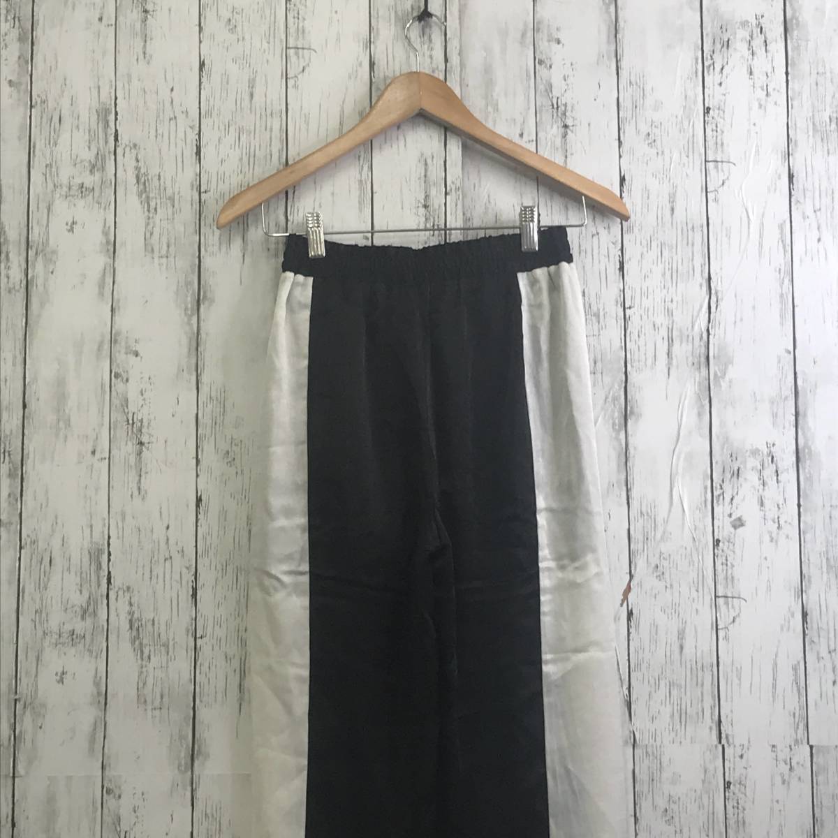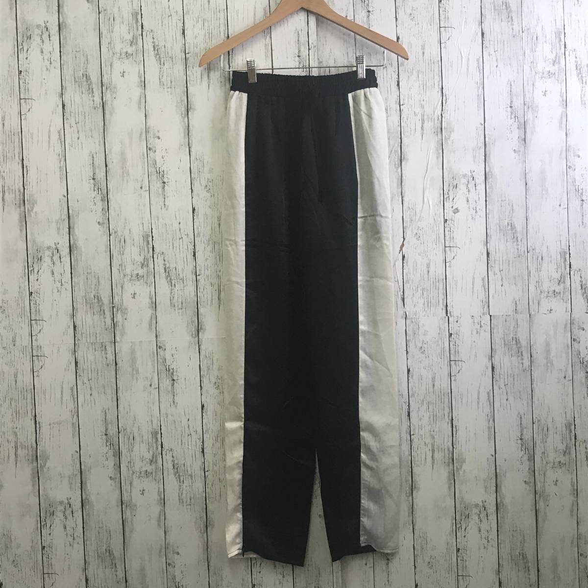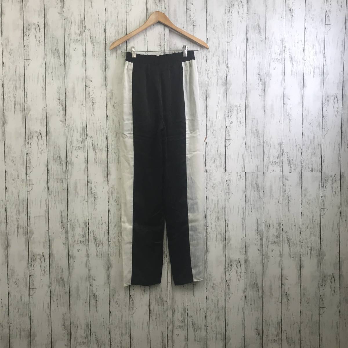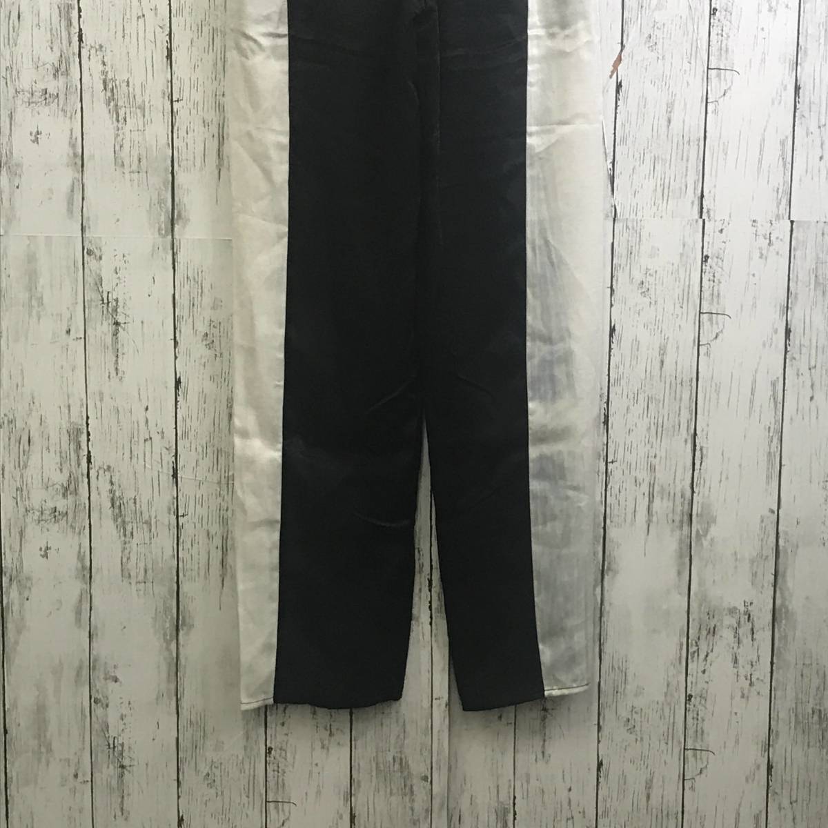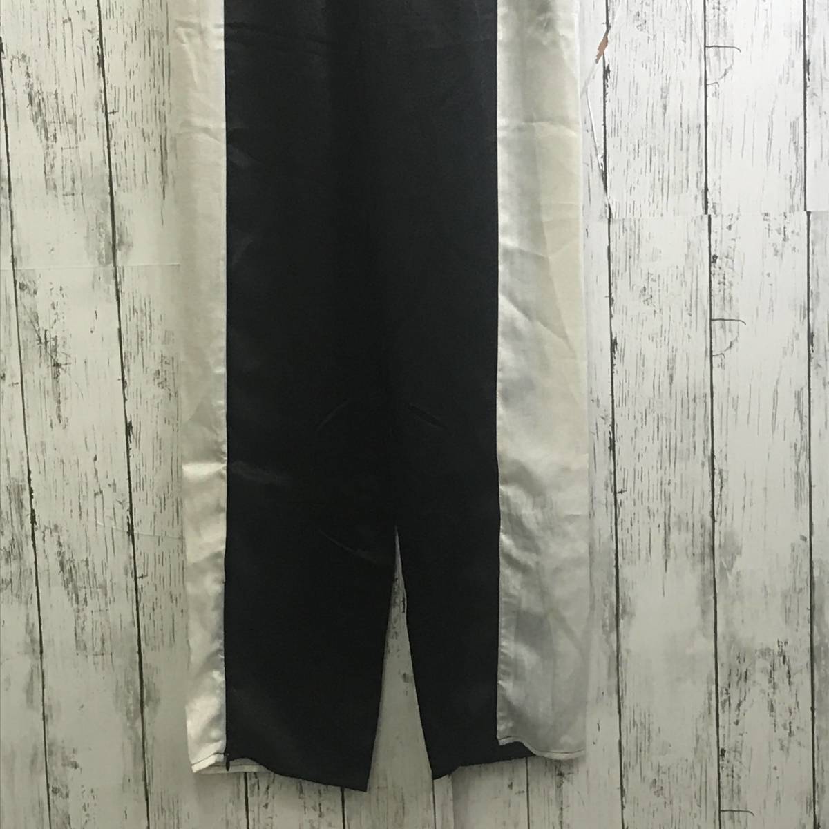 | 商品説明 | 商品名/サイドファスナー付きラインパンツサテン サイズ/M 着丈101cm股上31cm股下71cmウエスト30cm裾幅18cm 素材/ポリエステル100% 商品状態/目立った傷、汚れ無し |
