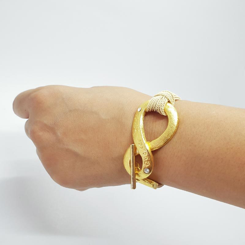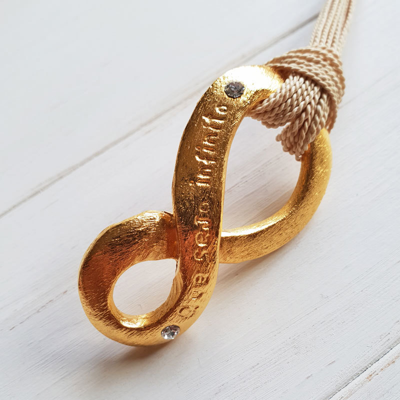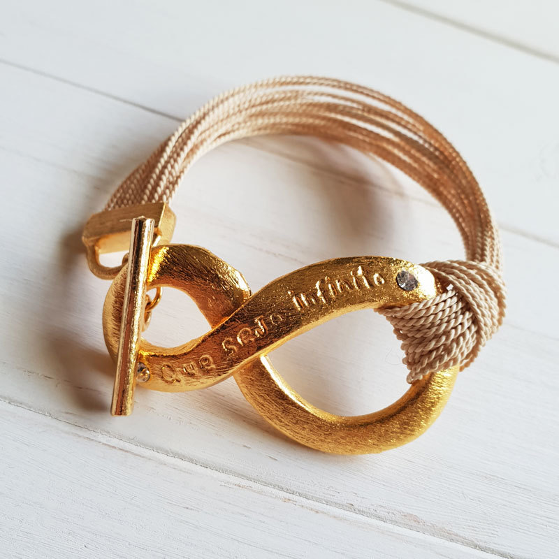 丁寧に編み込まれ何連にもなったブリチの自然素材とインパクトあるインフィニットモチーフがお洒落。