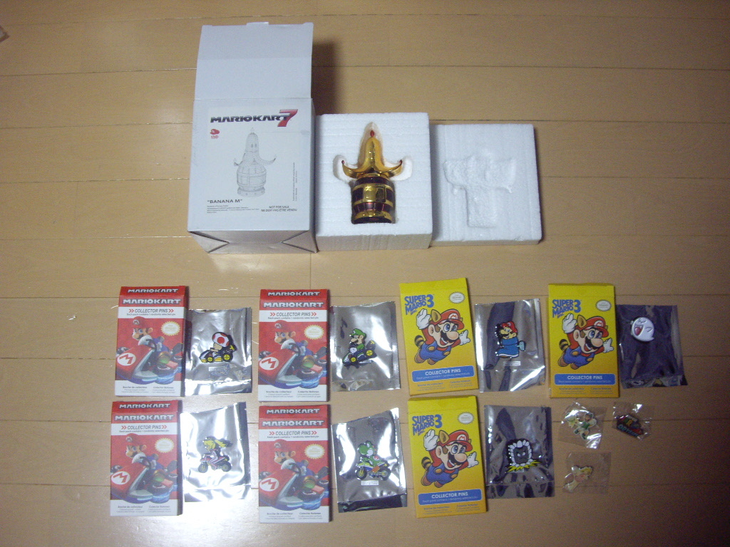 クラブニンテンドーヨーロッパ限定 マリオカート7 バナナカップトロフィー+マリオシリーズピンバッジ10個セット