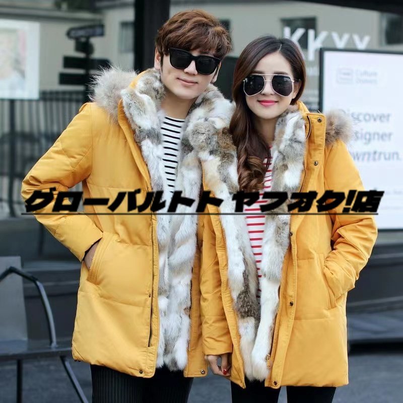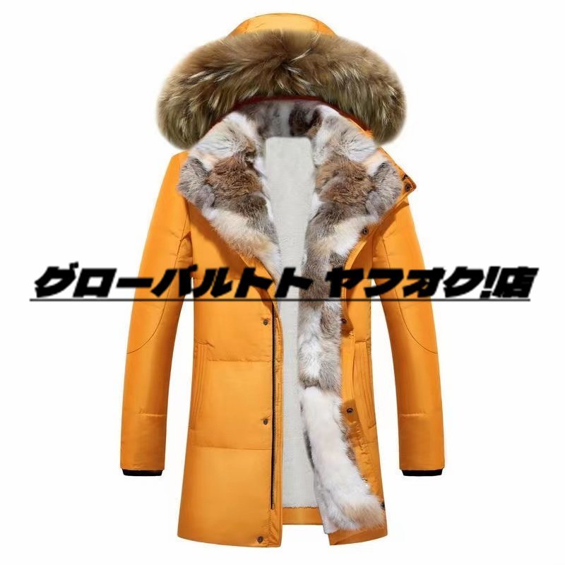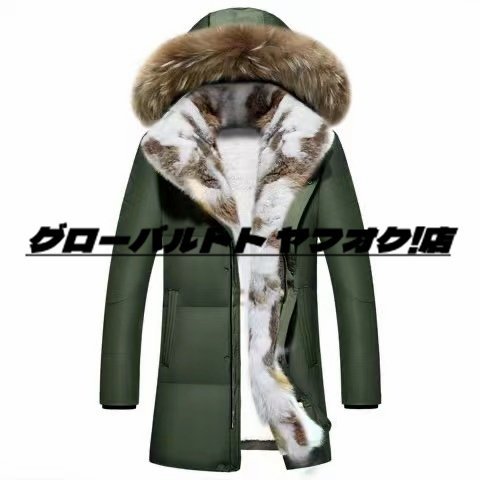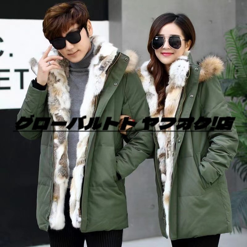 新品■ダウンジャケット ダウンコート厚手 モッズコート リアルファー アンゴラ兎毛 カップル ロングコート フード取り外す オリーブ 5XL
