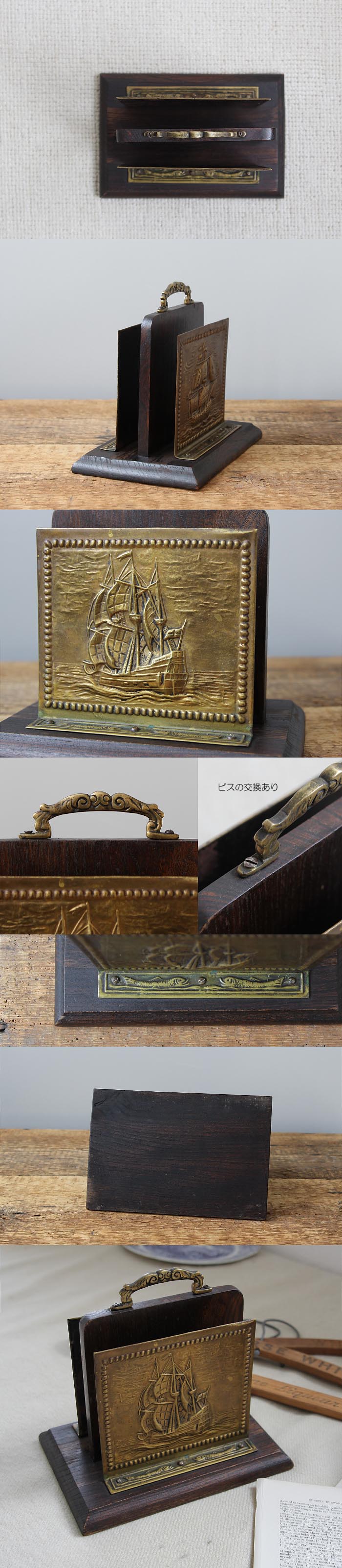 イギリス アンティーク レターラック 真鍮 ブラス オーク インテリア雑貨 「レタースタンド」V-872
