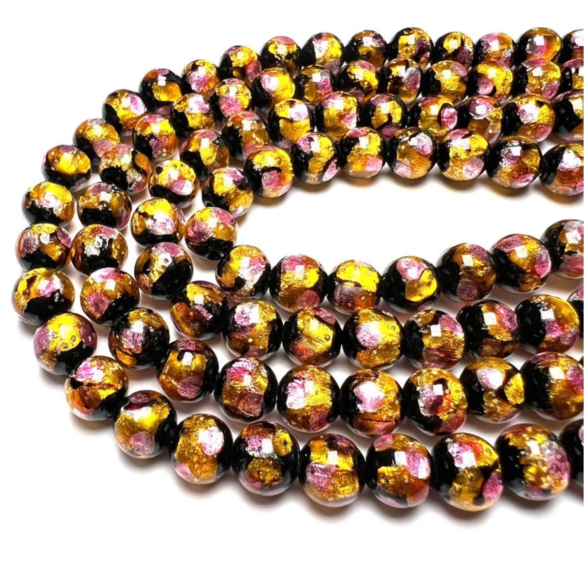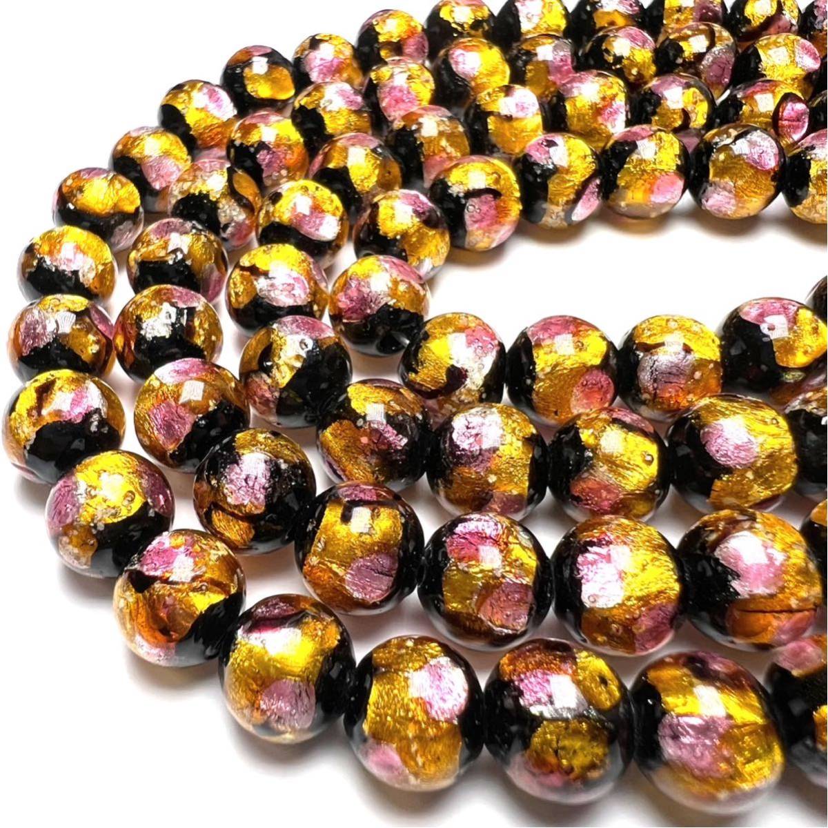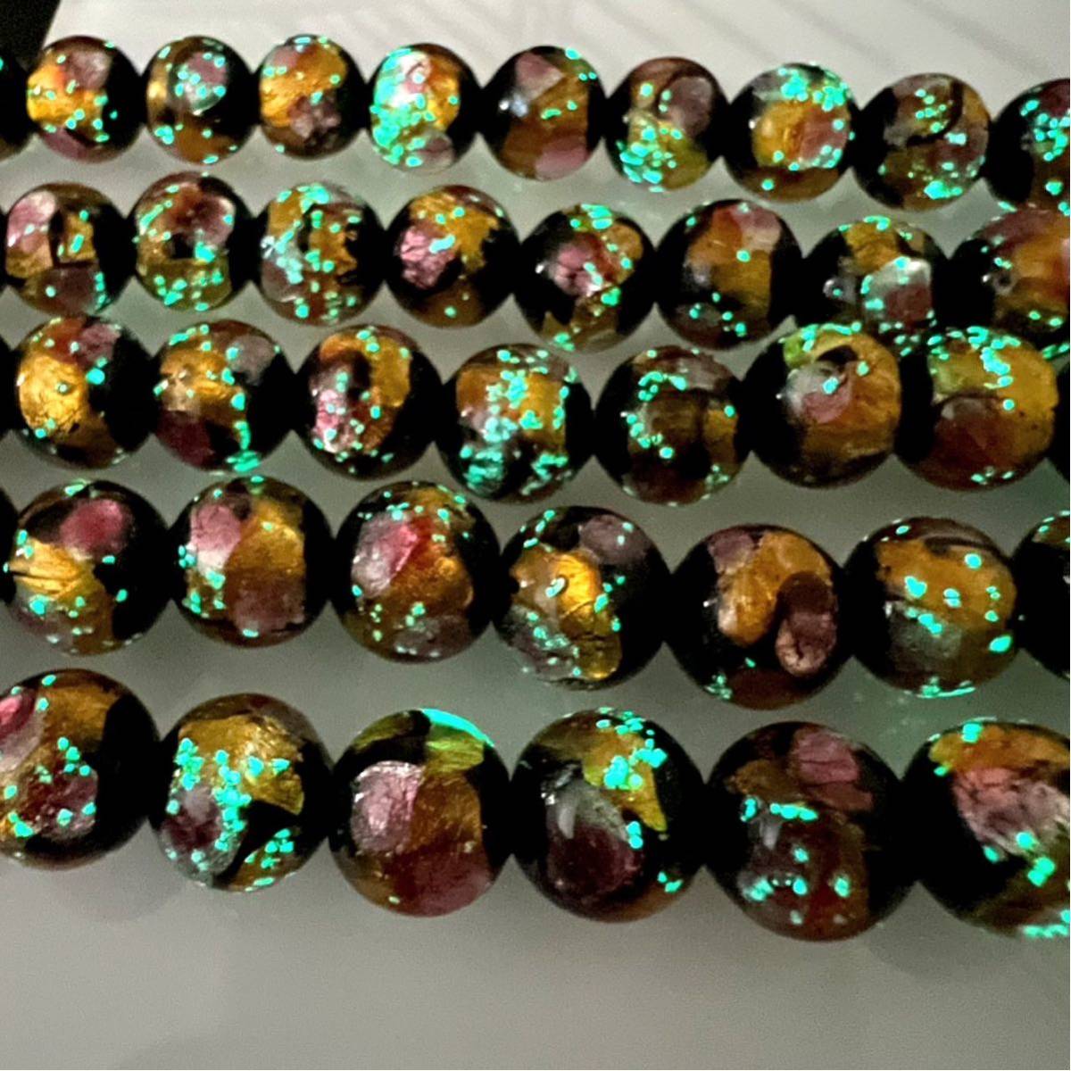 蓄光 ホタルガラス 8mm 連売り 50粒 ピンクゴールド とんぼ玉 とんぼガラス