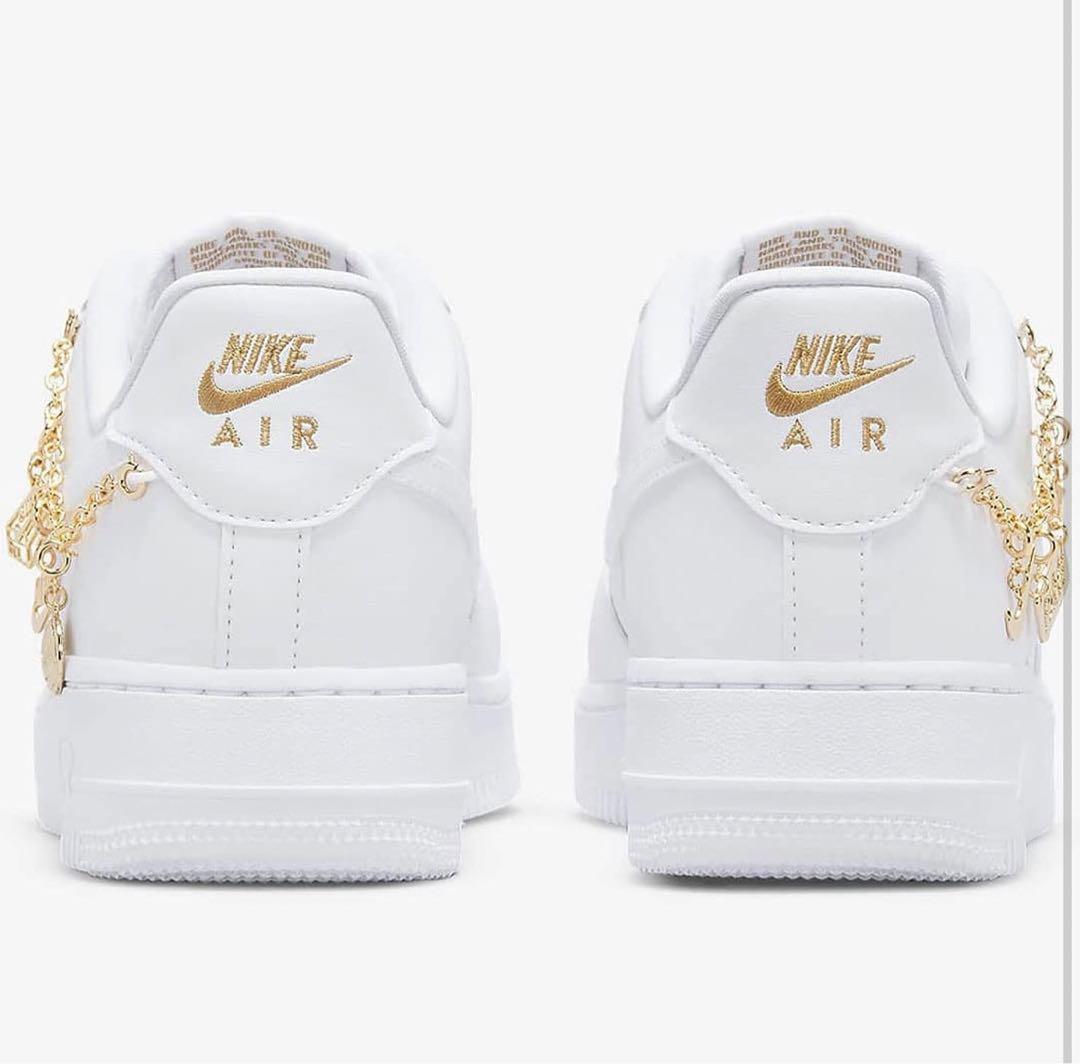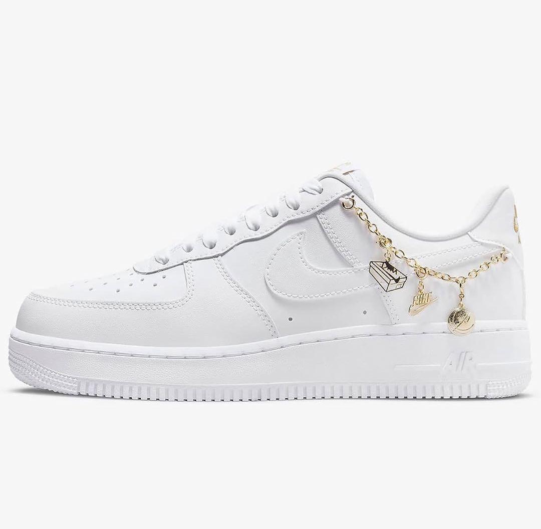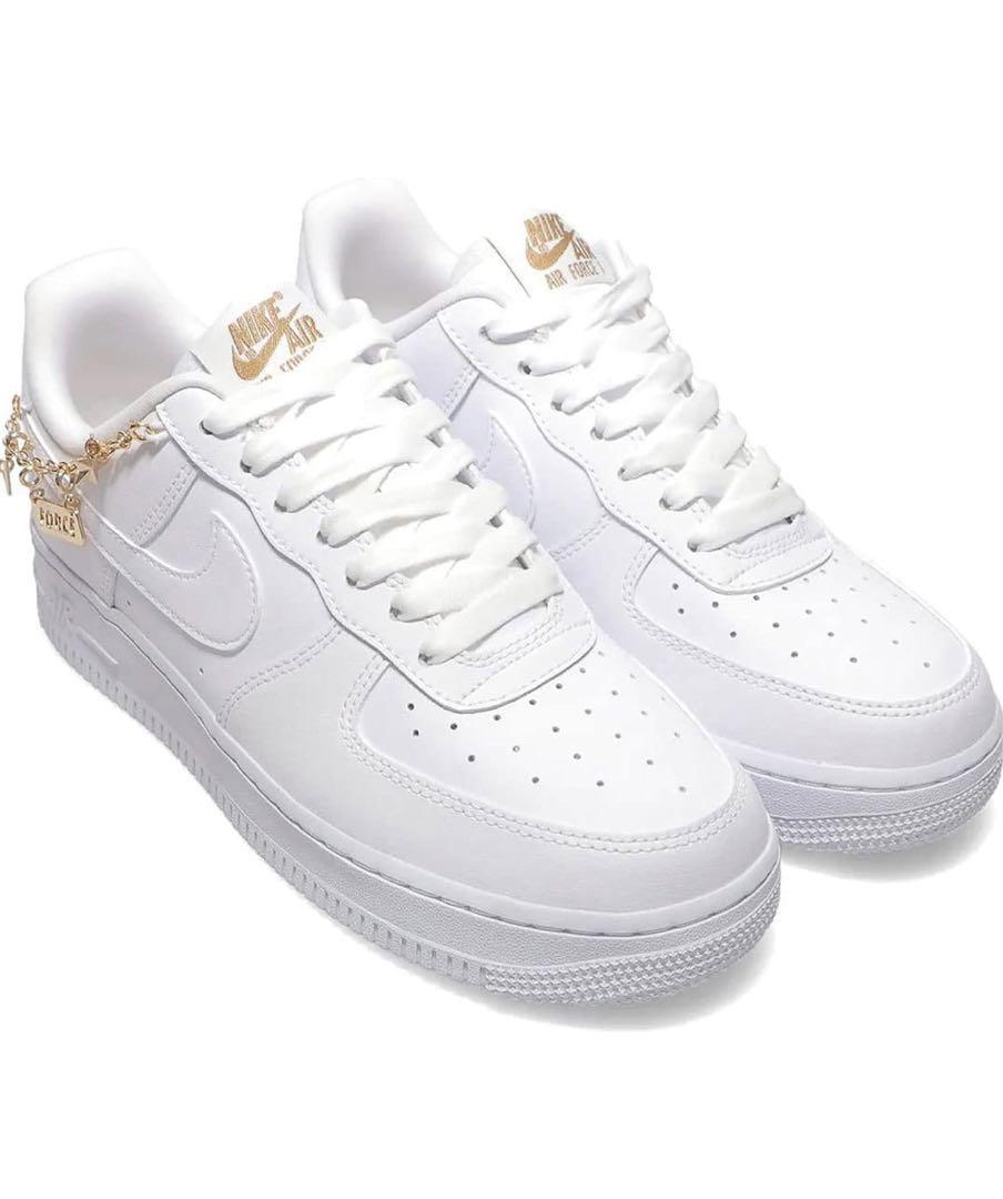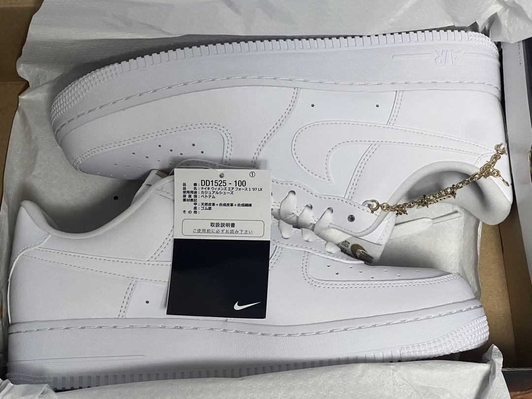 【新品】NIKEナイキエアフォース1’07 LX ホワイトペンダント27cm 新品未使用 Nike WMNS Air Force 1 Low "White Pendats" ☆超人気の為公式サイト即売り切れ商品です☆ 伝説のシューズにチェーンをプラス。 ペンダント付きの取り外し可能なゴールドのチェーン。 左右異なる6種類のチャームがつくのも魅力。 シンプルなスタイルを楽しみたい時はチャームを外してバックやポーチなどにもつけられ、気分に合わせたスタイルをカスタマイズ。 品番: DD1525 100 大人気 完売品 入手困難 ●国内正規品 新品未使用 ●カラー:ホワイト ●サイズ:ウィメンズ27cm ●附属品:箱、黒タグ 輝きは、エア フォース 1 "White Pendant" に生き続ける。人気のスタイルに斬新なアレンジを加えた定番のバスケットボールシューズは、ステッチ入りのオーバーレイ、大胆なディテール、完璧なバランスのバスケットボールスタイルが視線を集めるデザイン。取り外し可能なペンダント付きゴールドチェーンで、洗練された雰囲気にカスタマイズできる。 NIKE ナイキ エアフォースワン AirForce ペンダント