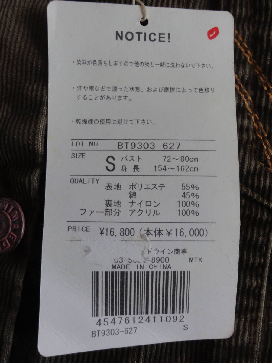 新品 EDWIN ブルゾン MISS 503 Sサイズ コーデュロイ こげ茶 BT9303-627