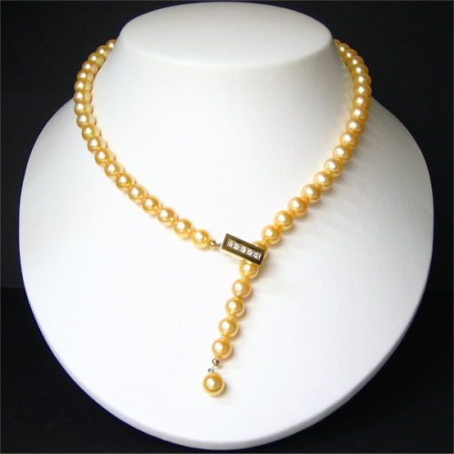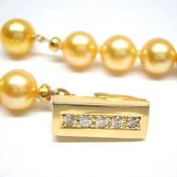 こちらはアコヤゴールドパールダイヤ0.15ct入りK18ショートナーネックレスです 7ミリのアコヤ真珠をゴールドに調色(染色)しており、 アコヤ本来の美しい照りがさらに美しく柔らかなものになっています 48センチのネックレスはショートナーにより自由な位置で留めていただくことができ ゆったり目のYタイプはもちろん、ショートナーを後ろに回していただくことで ノーマルタイプのネックレスのようにお使いいただくこともできます ショートナーは真珠に合わせてK18の地金もの そちらにダイヤを5石、合計0.15ctあしらい、豪華な意匠に仕上げてあります 身につければ目を引くこと間違いない 美しいパールネックレスです ぜひご利用ください 【商品詳細】 アコヤゴールドパールダイヤ0.15ct入りK18ショートナーネックレス 素材:アコヤ真珠(7ミリ珠 ゴールドに調色) ショートナー:K18(地金部分 刻印入り) ダイヤ5石合計0.15ct(刻印入り) サイズ:ネックレス長約48センチ |