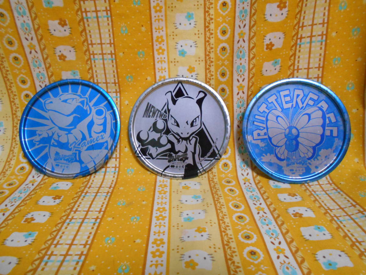 ♪ポケモン美品ポケットモンスター永谷園缶コースター3種セット直径8cmカメックス&ミューツー&バタフリー任天堂
