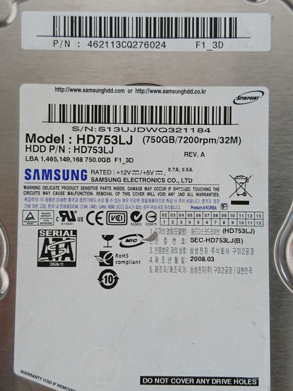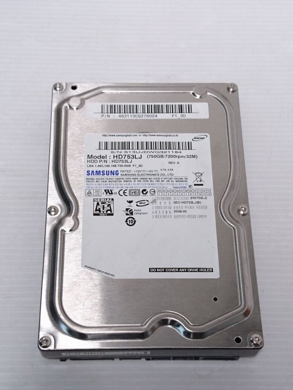 ★ジャンク品★SAMSUNG(サムスン) ハードディスク HDD HD753LJ 750GBx1 3.5インチ★計1枚 ★ |