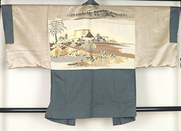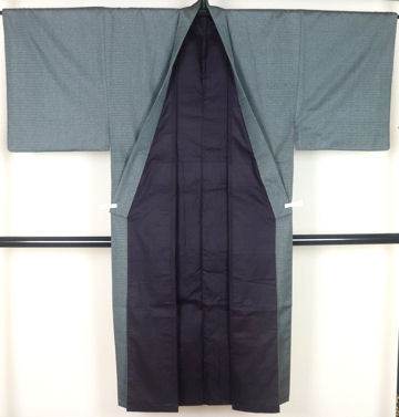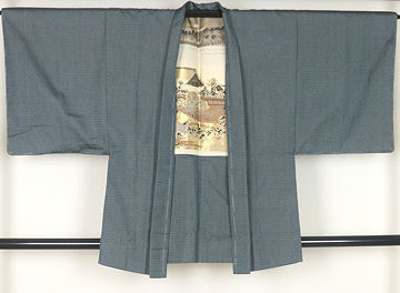 | 紬アンサンブル 袷 緑地小亀甲 羽織裏柄 屋敷風景画柄 S寸 | |