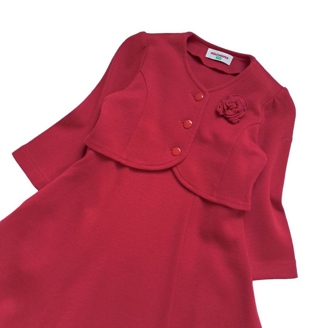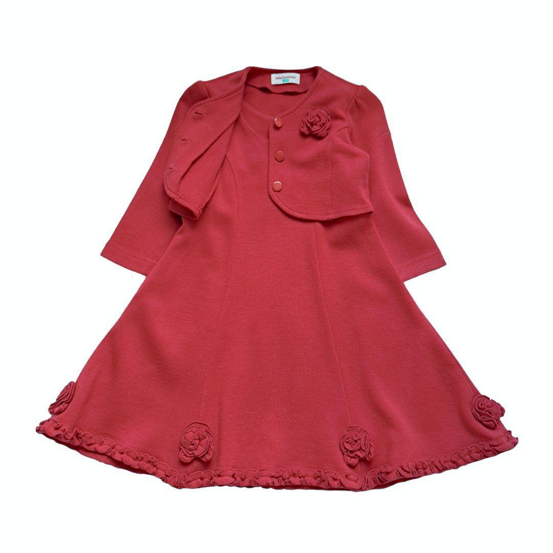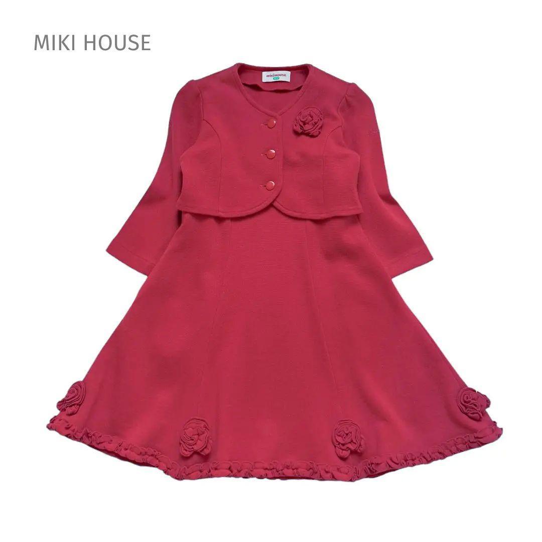 ミキハウスのノーカラージャケットとノースリーブワンピースのアンサンブルです。
