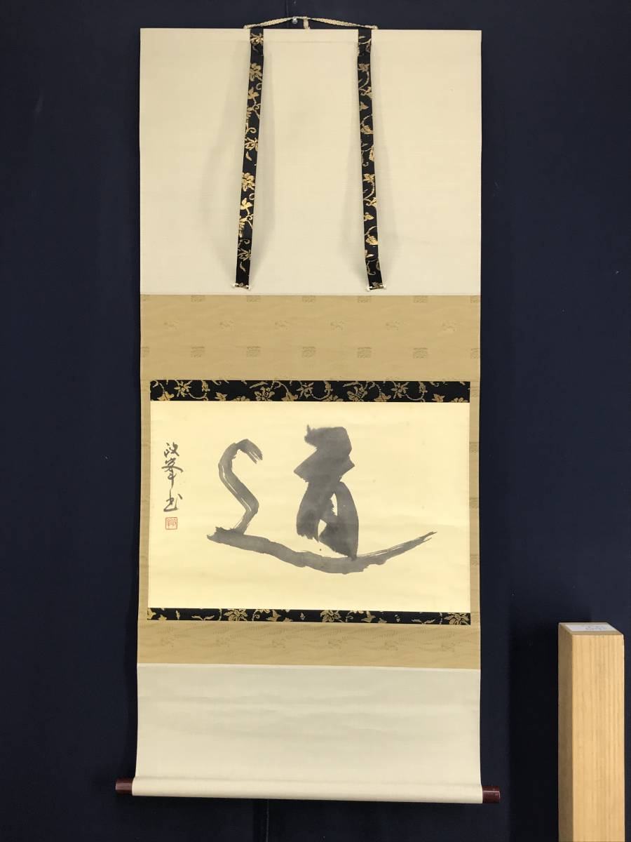 【作品状態】 本紙は紙本肉筆です。本紙は薄汚れ、多少のシミあります。表装は良好です。
