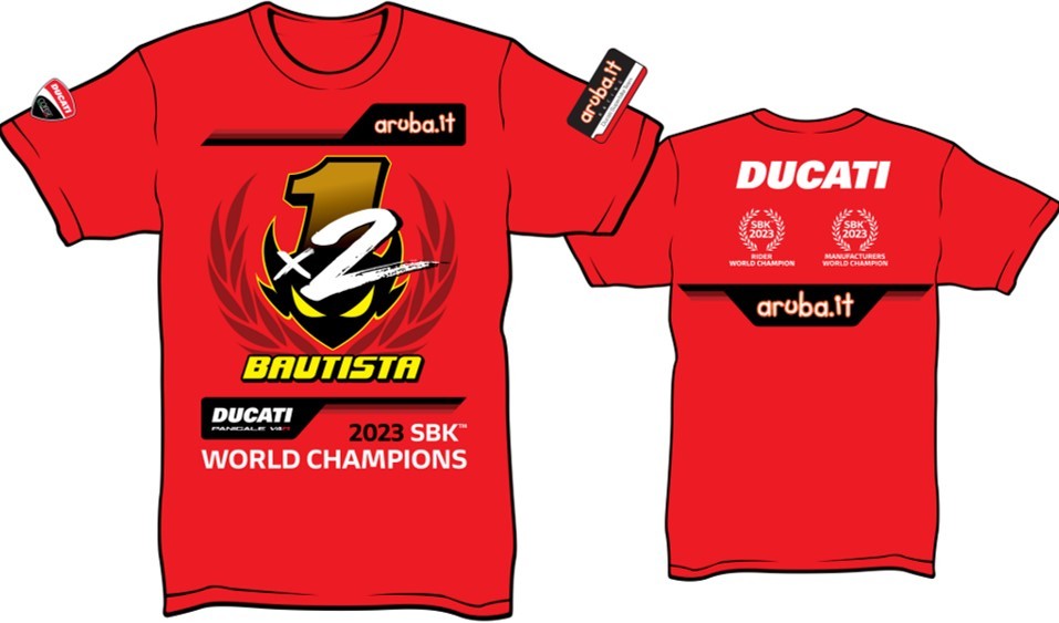 商品説明 | *商品はメーカー純正品となります。 *画像はイメージです。 WSBK2023チャンピオンシップ記念Tシャツ DUCATIワークス WSBK2連覇記念バウティスタモデル サイズ:Mサイズ ※サイズ感の相違による責任追及ならびに返品、交換はお受けできません。 *商品はメーカー純正品となります。 *画像はイメージです。 |