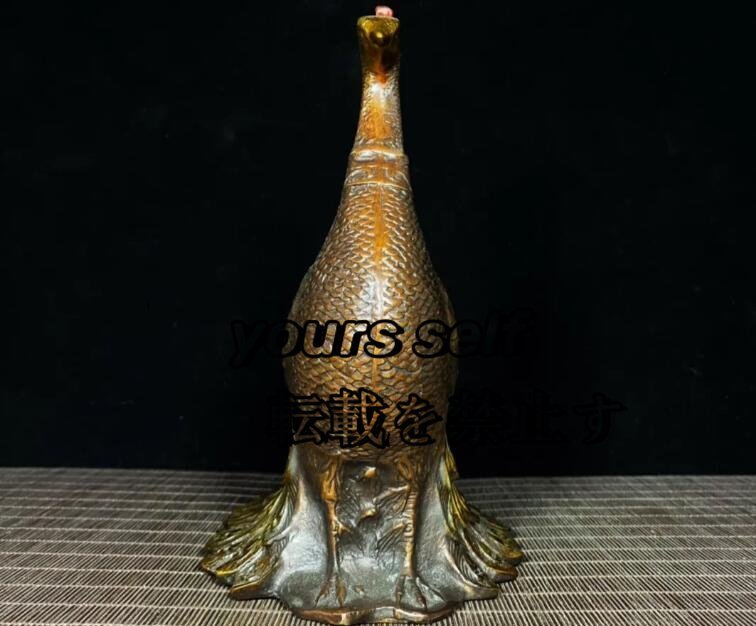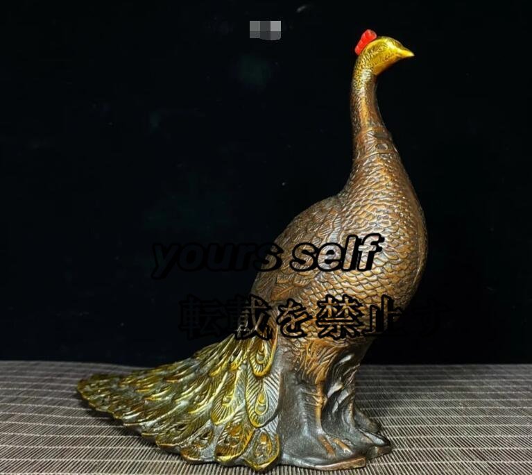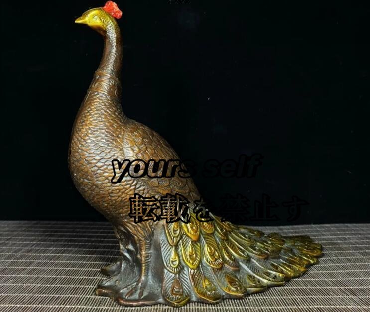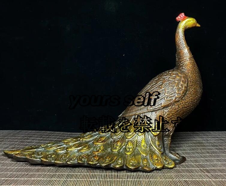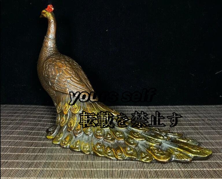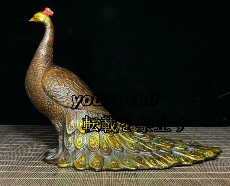 純銅彩色クジャクの開眼した家の玄関飾り高さ21cm