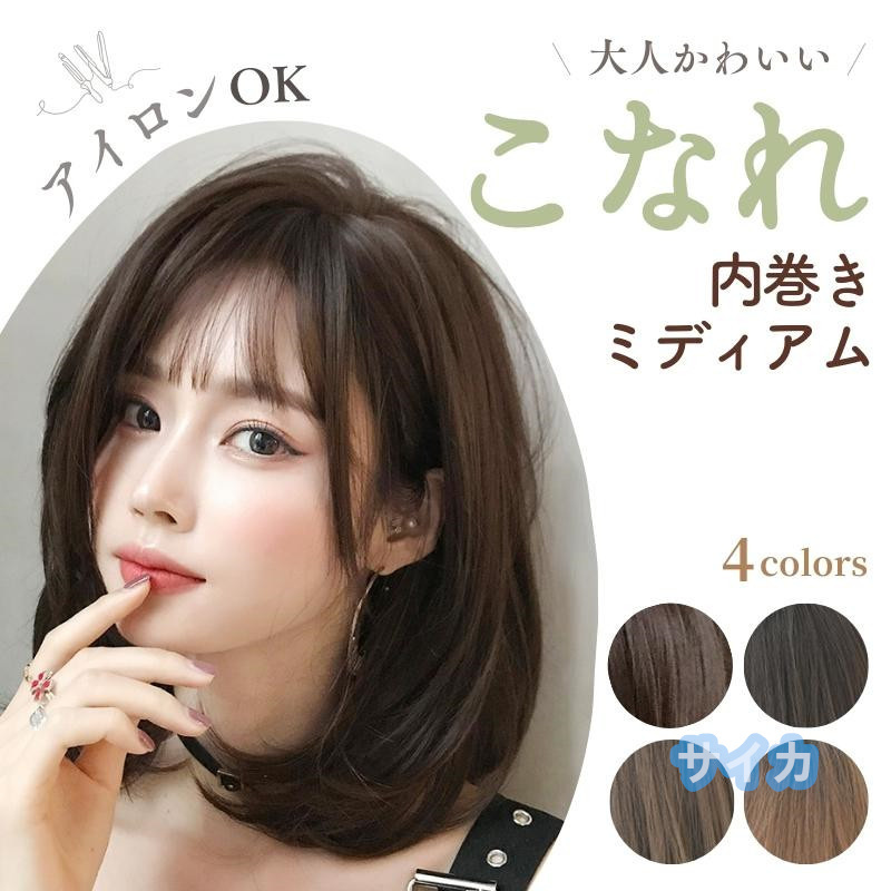 ウィッグ レディース ミディアム フルウィッグ 女性 かつら つけ毛 ボブウィッグ 内巻き自然 ゆるふわ 大人かわいい ファッションF131