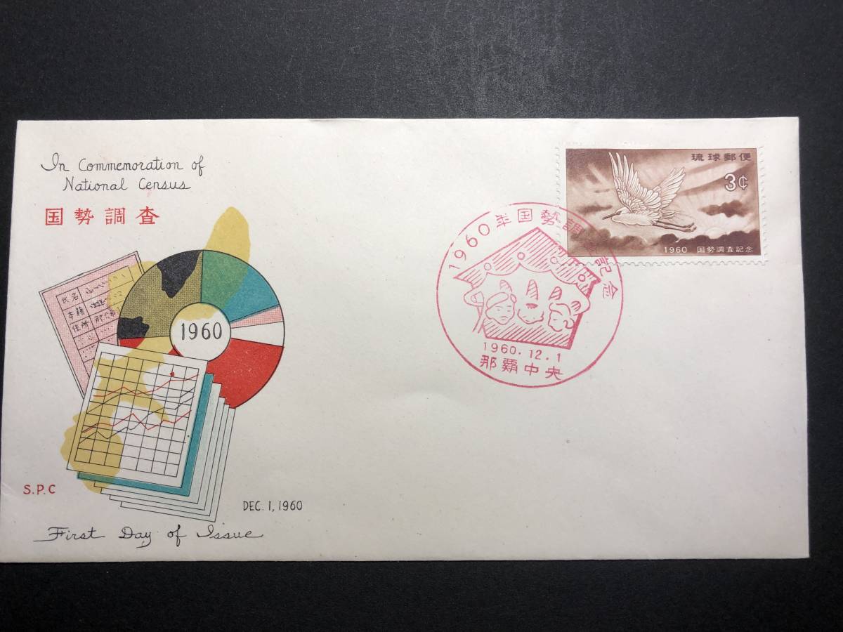 ★FDC 初日カバー★沖縄 琉球切手 1960年国勢調査記念 「朝日とさぎ」 S.P.C版 1960年発行 Y4869