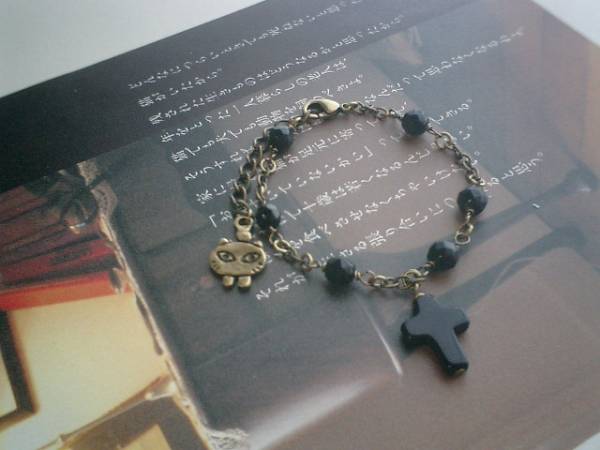 ロゼッタの仮縫い・・シリーズです♪クロス&クロス・・オニキスとクロスのブレスレットです♪♪♪深い黒のオニキスがニューヨークモダンしています♪♪17×12ミリのオニキスのトップには6ミリのラウンドカットのオニキスを合わせてキュートな表情です♪長さは16センチ+アジャスター6センチで最長22センチ位です♪♪お揃いのブレスレットやネックレスやピアスも出品しています♪♪シンプルで長く着けていただけるデザインを考えて作りました♪ハンドメイドをご理解頂いてノークレーム、ノーリターンでお願いします