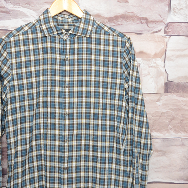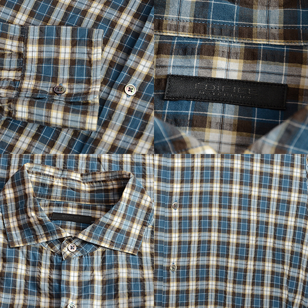 AS5527 エディフィス EDIFICE 長袖シャツ 40 / S 肩42 格子柄 メール便 xq