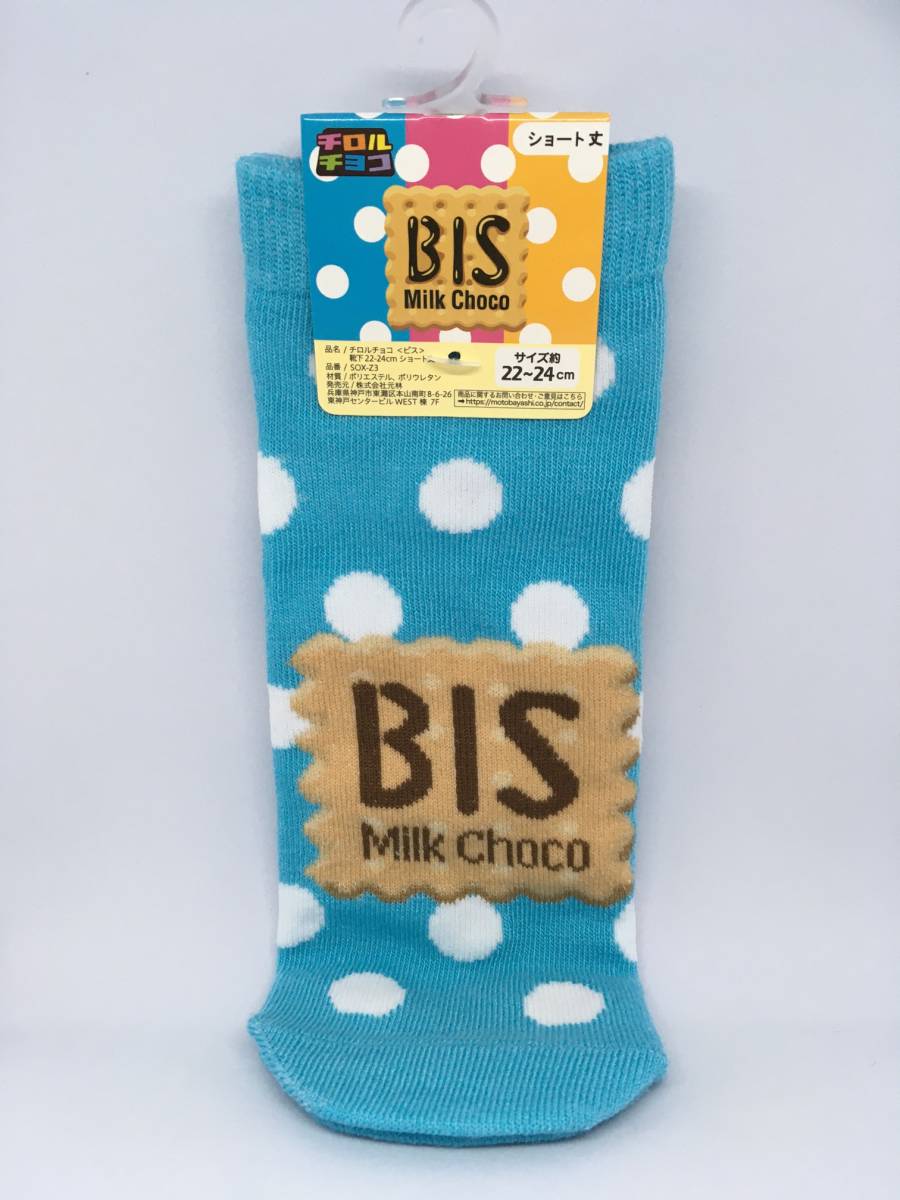 チロルチョコ BIS/ビス ミルクチョコ ショート丈ソックス☆彡 ブルー☆ 22~24cm 靴下 新品 TIROL CHOCOLATE