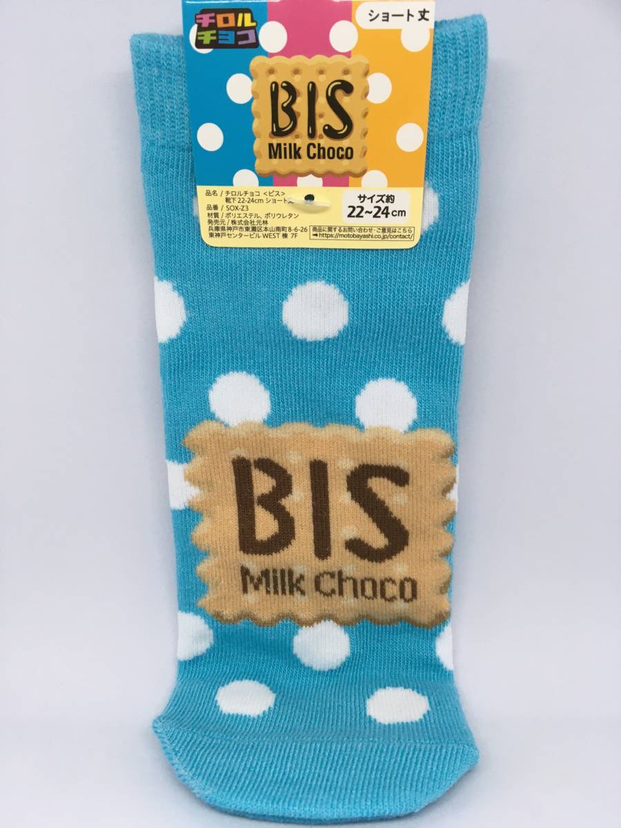 チロルチョコ BIS/ビス ミルクチョコ ブルー色のショート丈ソックスです☆彡新品未使用品です!