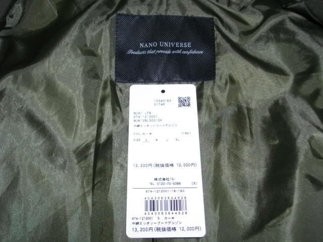 美品 nano・universe 中綿ミリタリーブルゾン カーキ Sサイズ ナノユニバース |