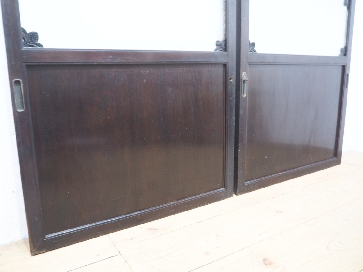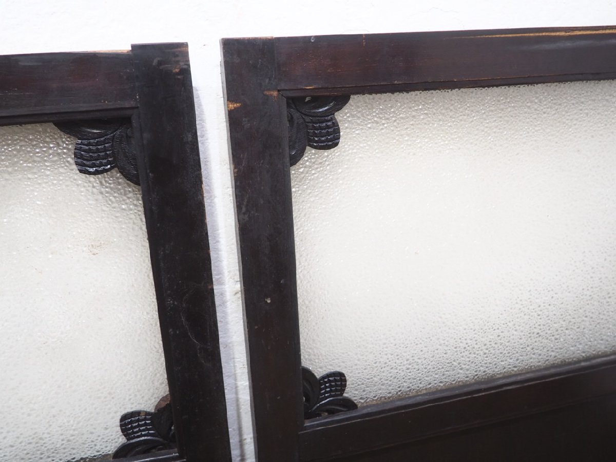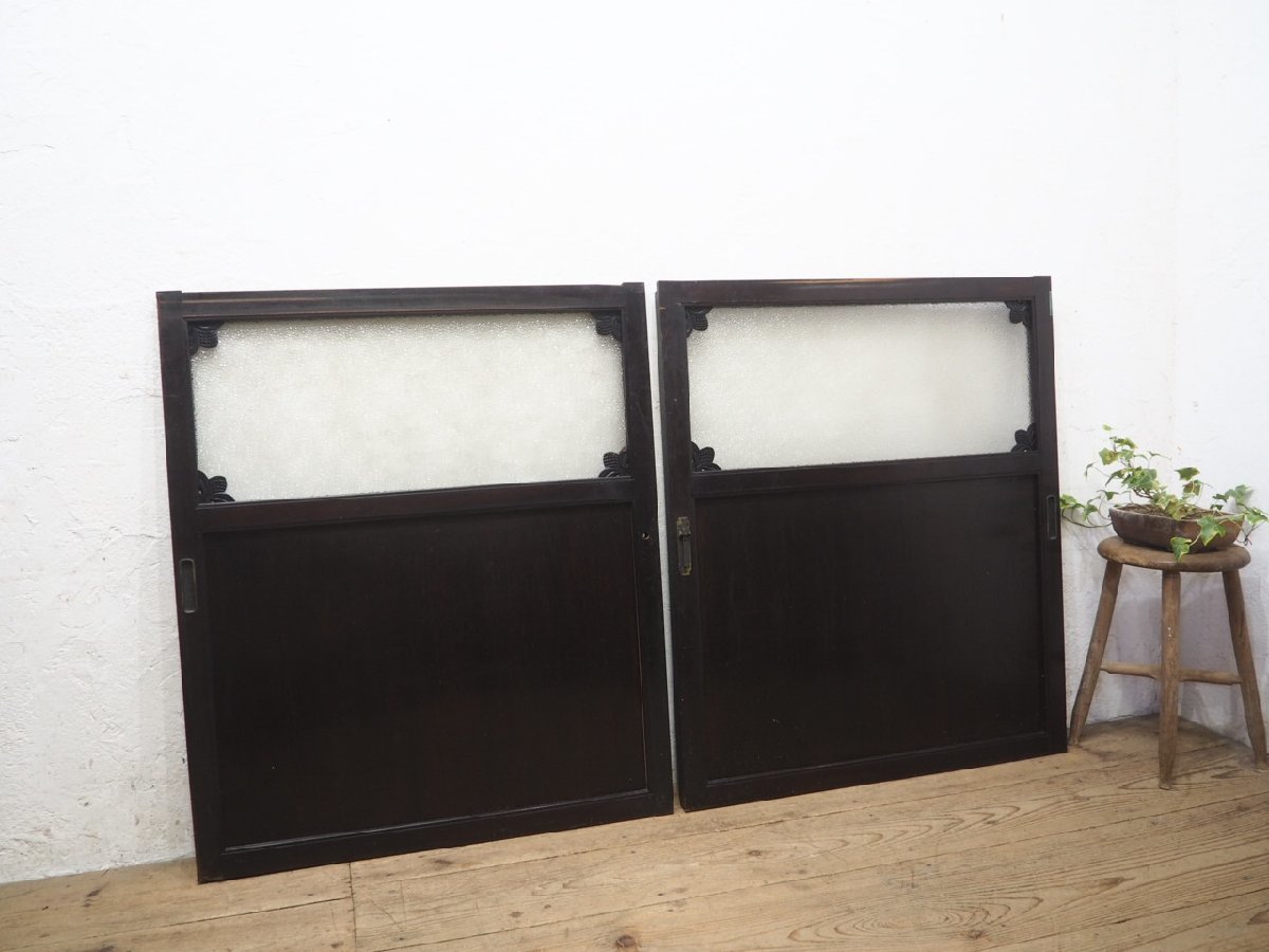 商品情報 | ■商品詳細■ アンティークの古い木枠引き戸、2枚セットです。 長年使い込まれた味わいのある品です。 なかなか入荷しない希少なデザインです。 ガラスは、ダイヤガラスを使用しています。 一般のご家庭はもちろん、レトロな店舗什器にもお勧めです。 経年の傷や欠け、染みや塗装の剥がれ、 木枠に欠け等がありますが、使用には問題ありません。 ガラスにヒビや割れはありません。 古い物とご理解いただければ幸いです。 ◆別カテゴリーにて、同じデザインの品(O0726)を出品していますので まとめてご希望の場合は、ストア内検索で上記の管理番号を検索して頂ければと思います。 売買済みの場合はご了承下さい。 ご不明な点などありましたら、質問欄にてお願いします。 ■サイズ■ 全体(最大値) (H 96cm×W 81,5cm×D 2,3~4,5cm)×2枚 本体 D 3,3cm 竪框 4cm 鴨居に入る部分 1,5cm 多少の誤差はご了承下さい。 ドライバー1人での配達になりますので、場合(通路が狭い等)によっては 荷運びのお手伝いをお願いすることがあります。 商品は玄関先までの配達になります。 |
