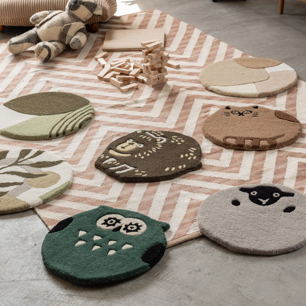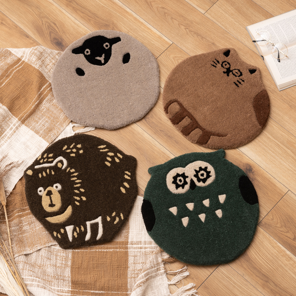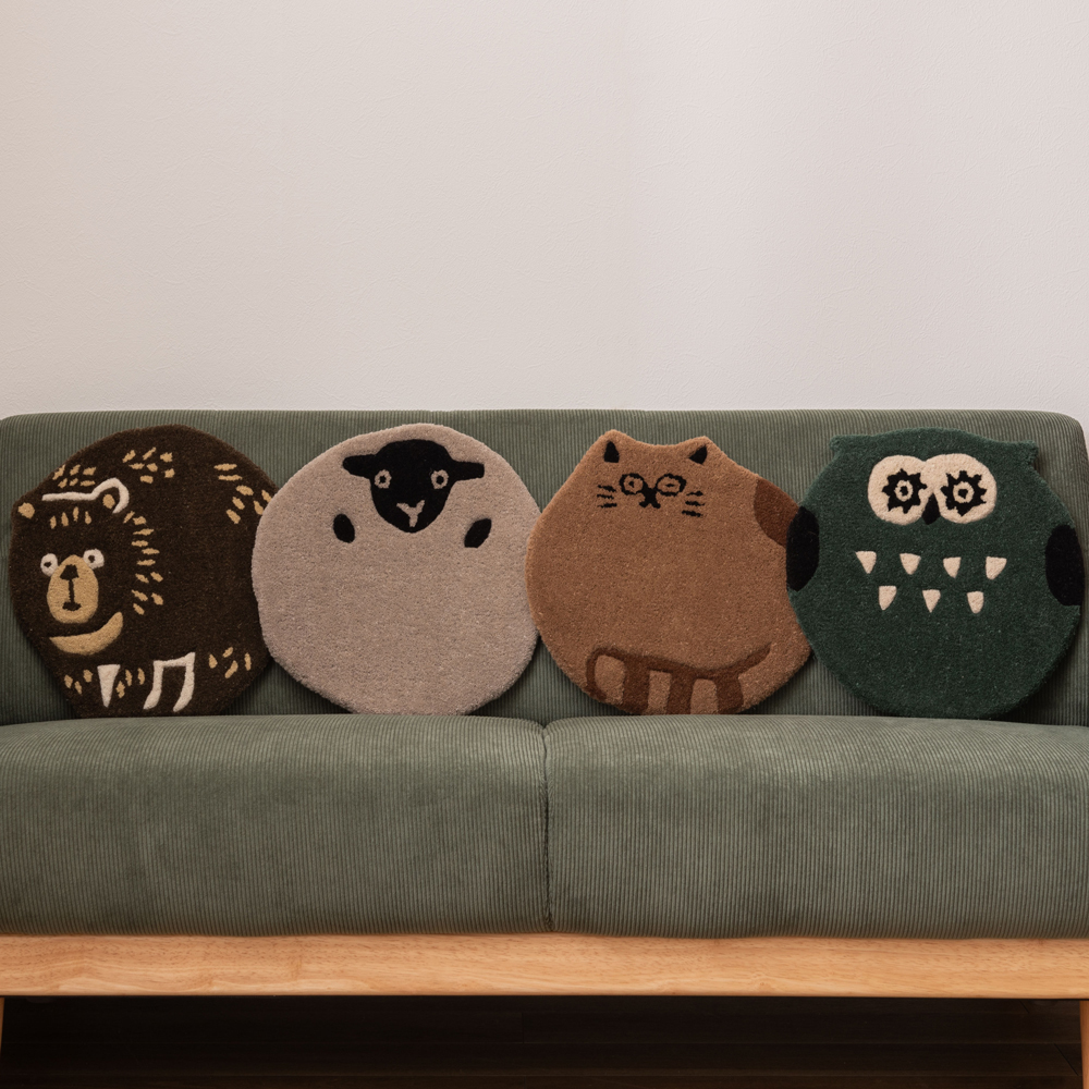 可愛くて癒される表情のアニマルたちがモチーフのシートクッションはいかがでしょうか? ウールを贅沢に使用する事で、ウール特有の絶妙な風合いが表現されているのもポイントです。 チェアやベンチの上に置いて、お家空間の演出をお楽しみいただけます。 1.8cmのしっかりとした厚みで、やさしい肌触りが特徴です。 ※複数ご希望の方は質問にて、お声がけ頂けましたら幸いです。 |