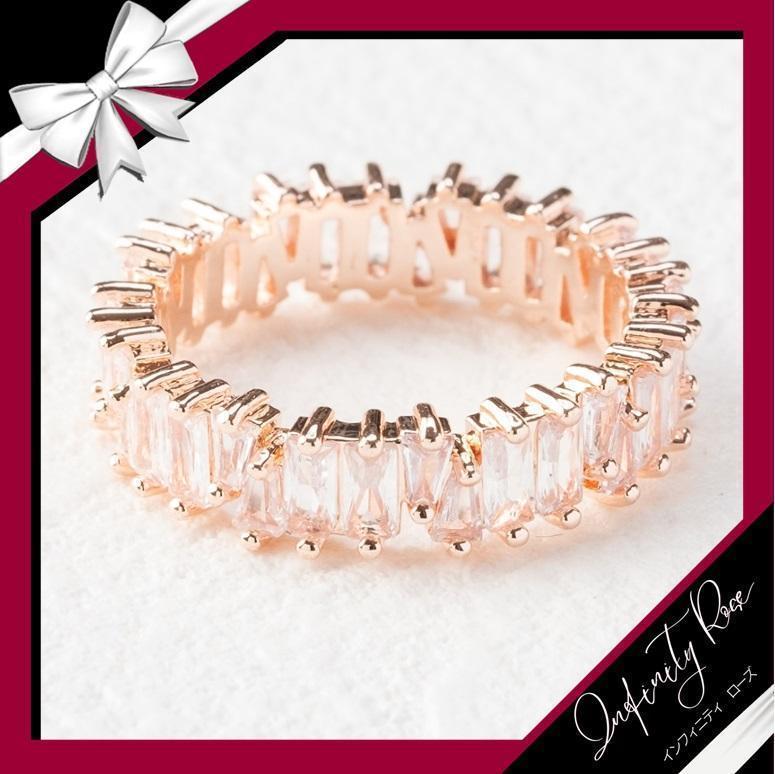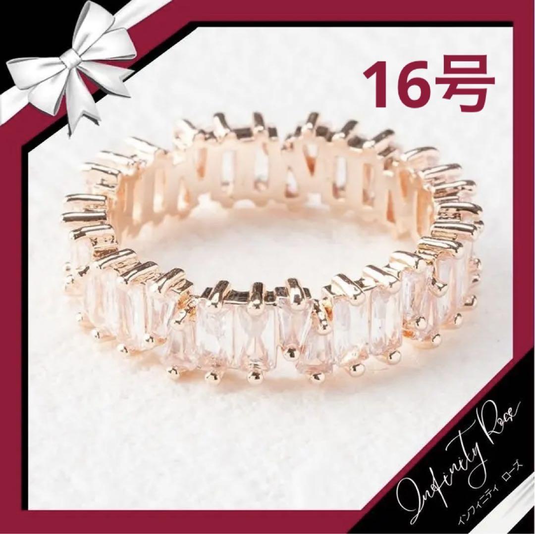 (R002PC)16号 ピンク×クリアスクエアキュービックジルコニア(CZ)リング 爪留め指輪