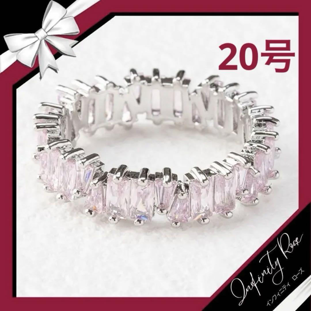 (R002SP)20号 シルバー×ピンクスクエアキュービックジルコニア(CZ)リング 爪留め指輪