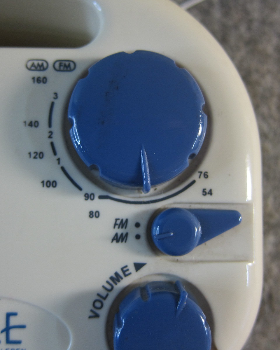 もともとは防滴ラジオですがパッキン不良につきゴムベルトを巻いています。防滴機能は有りません。