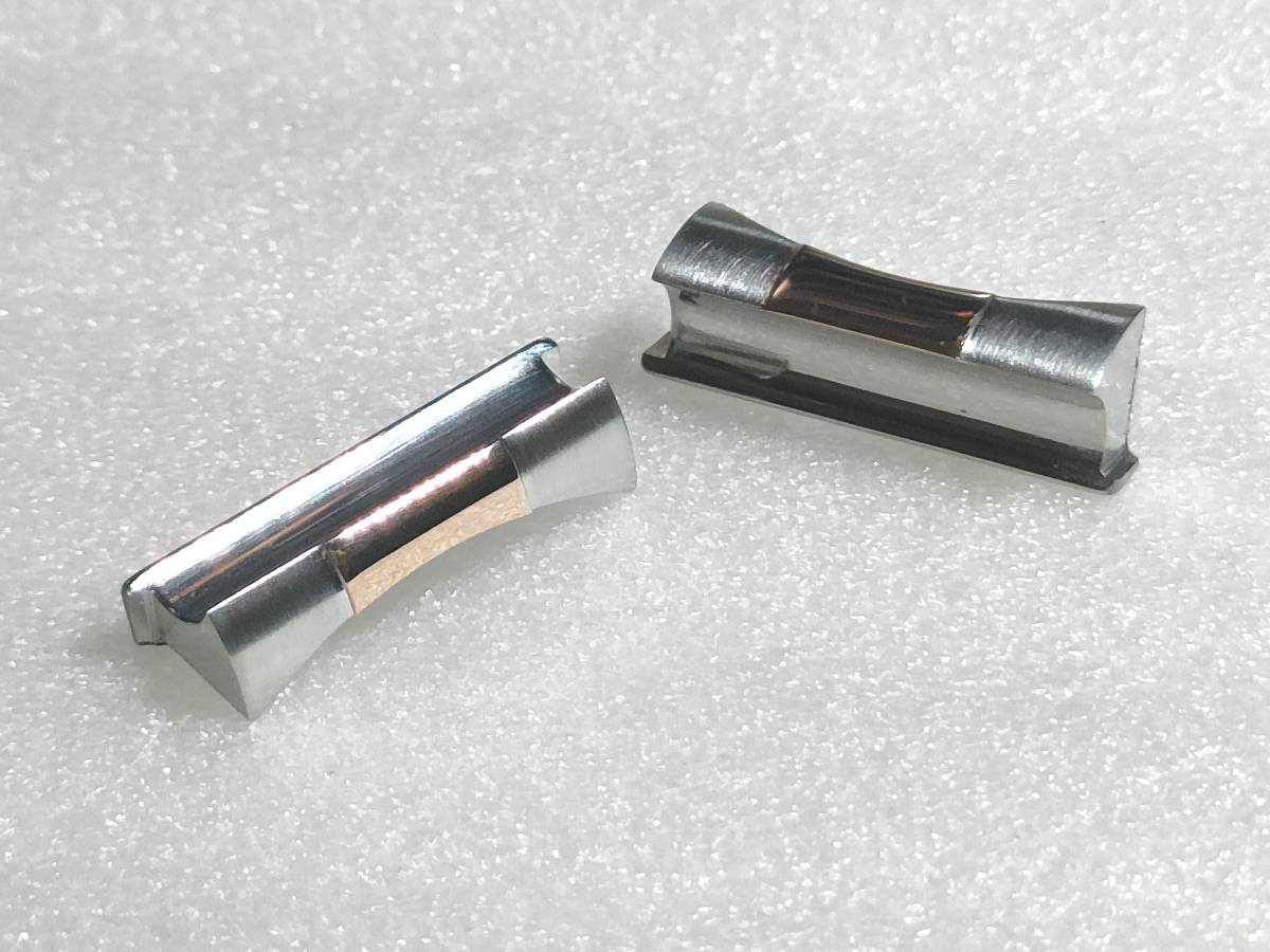 | 腕時計ロレックス等、互換用フラッシュフィット2個セットになります 全体に若干の擦れ、傷、雑な作りがございます (傷のイメージ:画像8) 中央は薄いローズ色になります 形状は画像でご判断ください 深い傷、貫通するような傷はございません できる限り状態の良い商品から発送致します 【サイズ】 ラグ幅 20mm 【カラー】ローズコンビ(センターポリッシュ) 【素材】ステンレス 【重量】 1個 2g 【付属品】バネ棒外し マイナスドライバー バネ棒20mm 5本 送料無料 迅速・丁寧に発送いたします ※機種によっては取付け出来ない場合がございます ※機器の都合により色あいが若干異なります ※傷の状態はサンプルと異なります ※サイズは若干の誤差がございます | |||