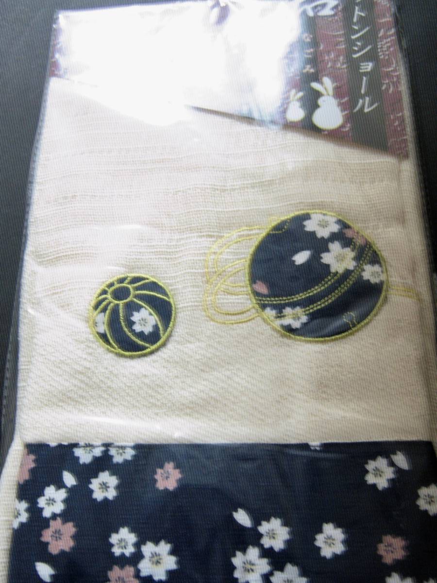 ◆◇和柄【和なごみコットンショール/手毬てまり 桜 白ぴんく 生成+藍】新品未使用品(長期保管)ストール マフラー 春夏秋冬
