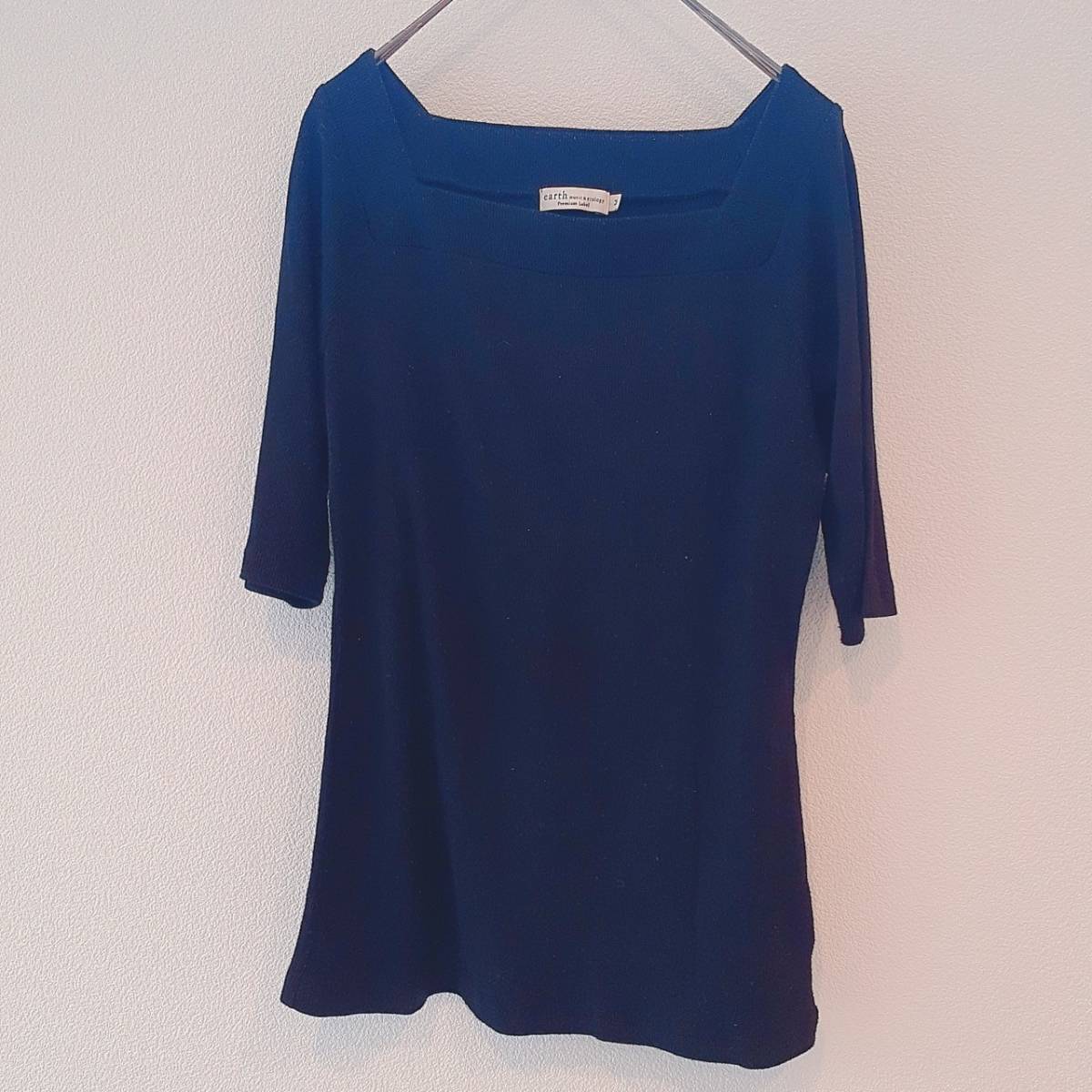 earth トップス カットソー 黒 ブラック 五分丈 M レディース 上品 |