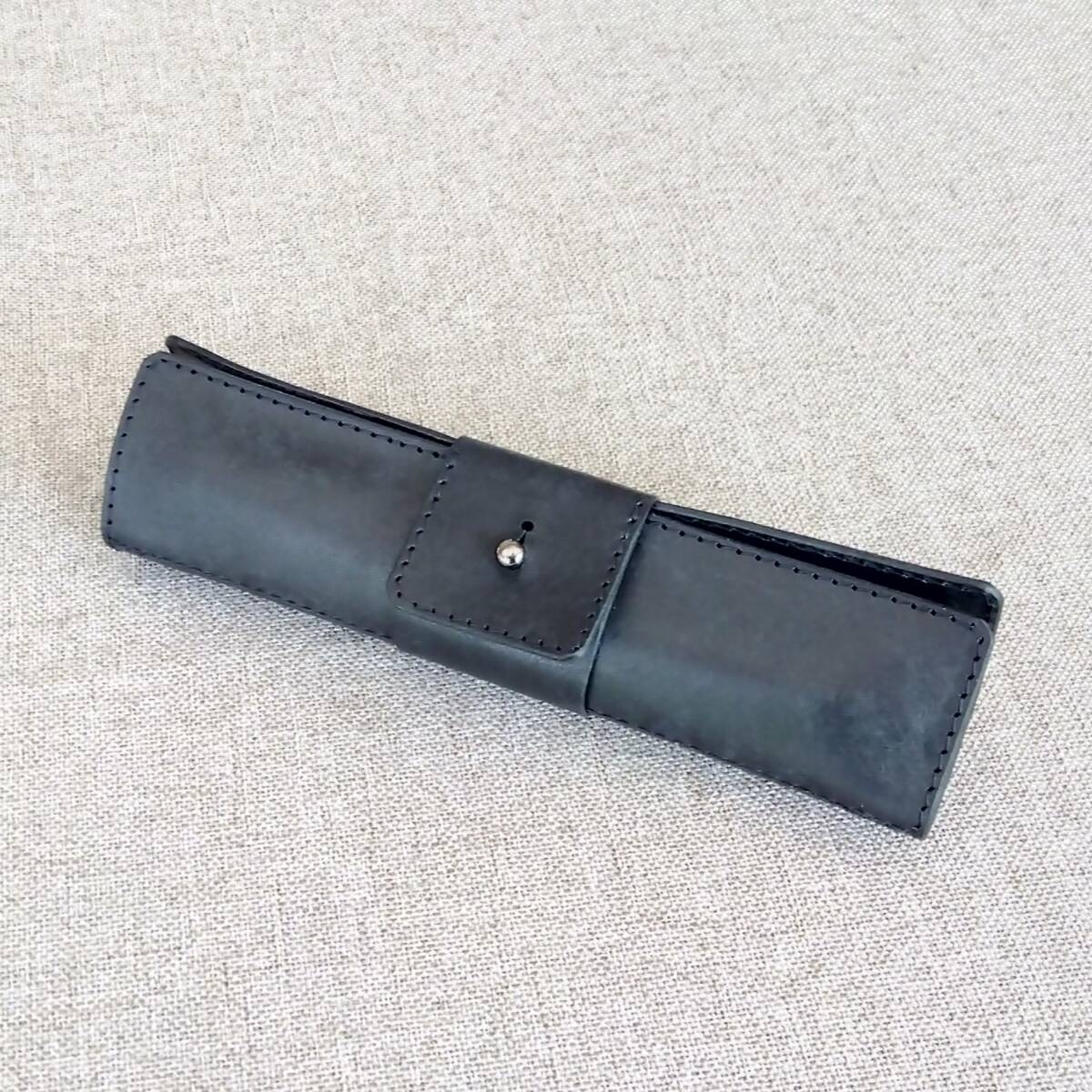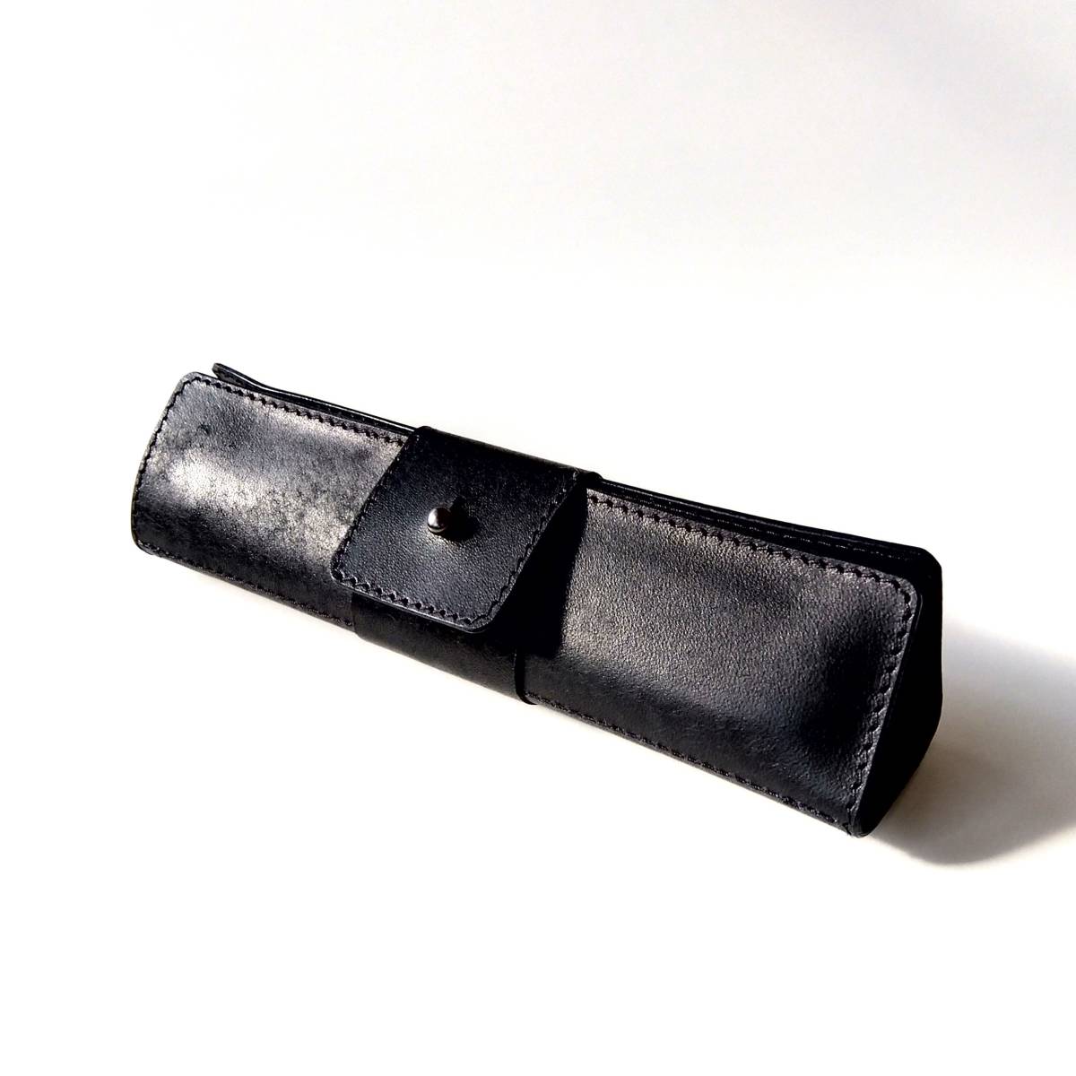 革をくるっと巻いてギボシで留めるロールペンケースを作ったら、コンパクトでかわいらしい感じに仕上がりました!