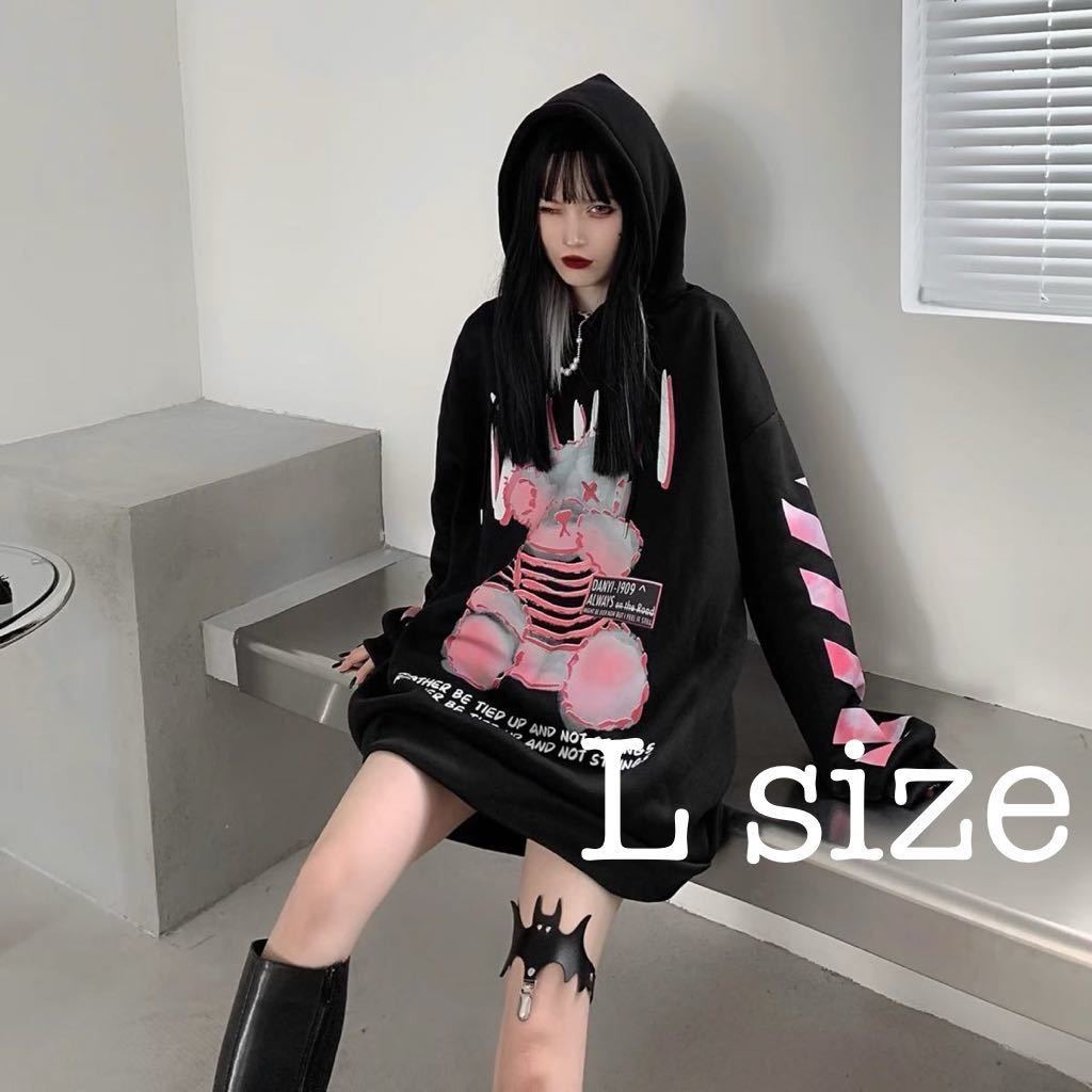 『 パーカー ビッグシルエット トップス フード 長袖 プリント 』